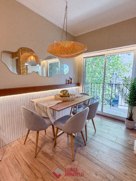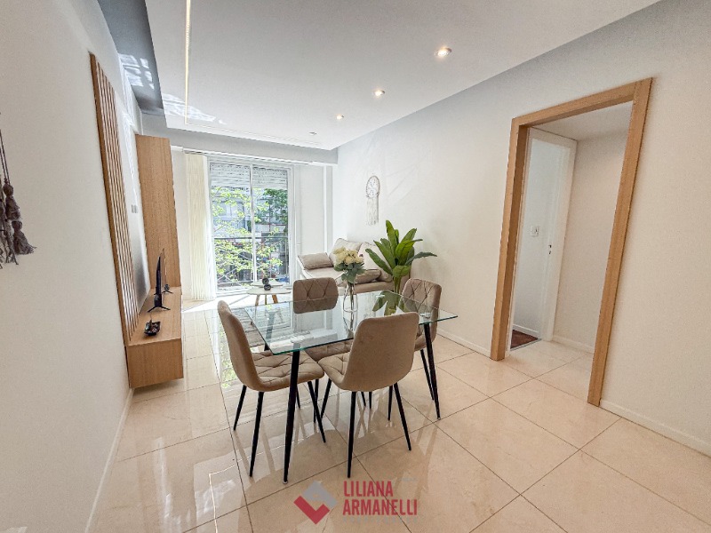 Departamento de 2 ambientes totalmente reciclado. Amplio living comedor a la calle con balcón saliente. Cocina con barra desayunadora. Heladera. Lavarropas. Dormitorio con placard. Baño completo con mampara. Muebles a estrenar. 38 mts. Ubicado en Colón y Santa Fé.