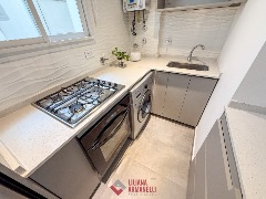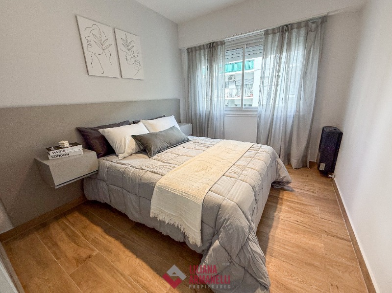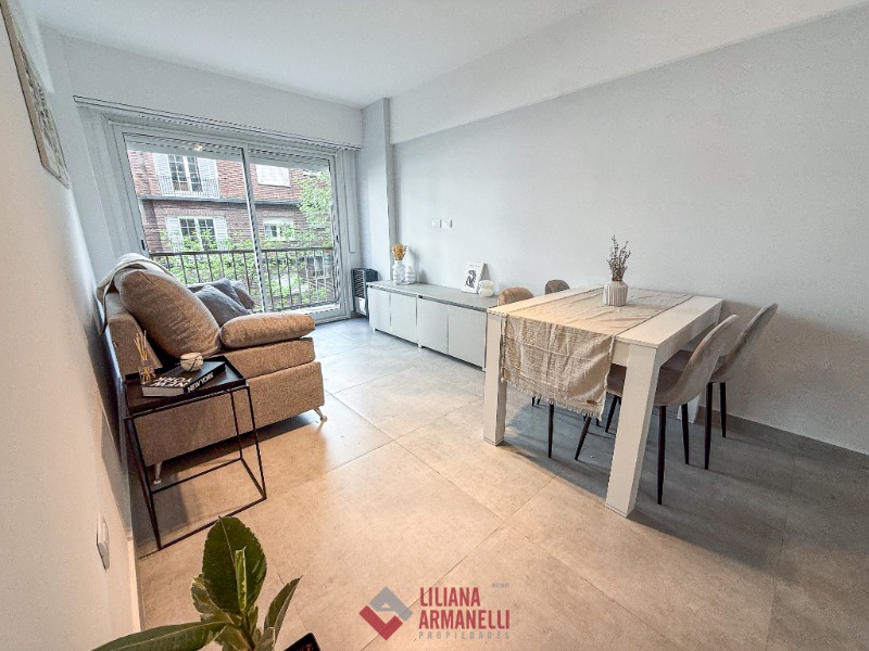 Departamento de 2 ambientes totalmente reciclado. Amplio living comedor a la calle con balcón saliente. Cocina con barra desayunadora. Heladera. Lavarropas. Dormitorio con placard. Baño completo con mampara. Muebles a estrenar. 38 mts. Ubicado en Colón y Santa Fé.