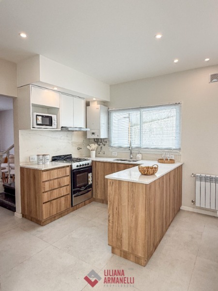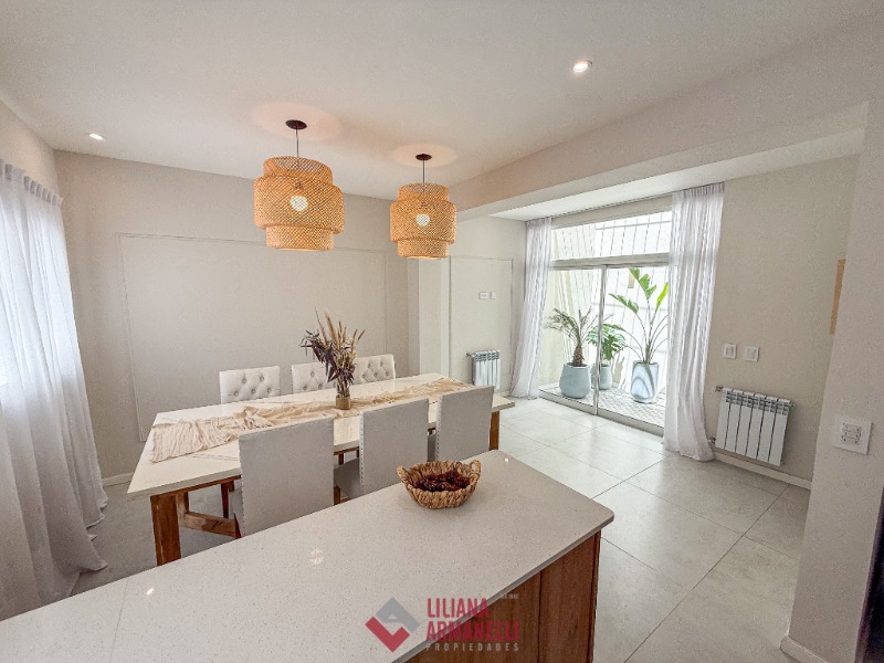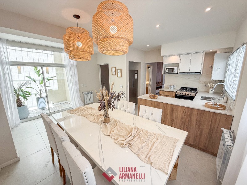 Casa 5 ambientes. P.B: Amplio living con ventanal a la calle. Cocina comedor con barra desayunadora. Toilette. Jardín de invierno. Garage con parrilla. P.A: Dormitorio principal con placard y balcón saliente. Segundo dormitorio a la calle con placard. Tercer dormitorio al cfte con placard. Baño completo con doble bacha. Terraza con espacio para lavadero. Calefacción por radiadores. Muebles a estrenar. 200 mts totales. 160 mts cubiertos. Ubicada en Zona Paseo Aldrey.