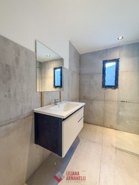 Casa de 3 ambientes a estrenar. Amplio living comedor en desnivel. Cocina comedor con barra desayunadora y amoblamiento a medida. Parque. Lavadero. Baño completo. Dormitorio a la calle con baño en suite. Segundo dormitorio al cfte. Losa radiante. 100 mts cubiertos. Lote de 8.66 x 25.80. Trotadora. Ubicada en San José.