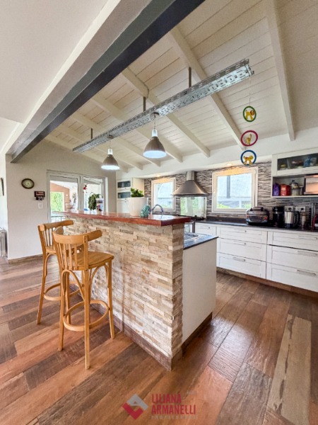 Casa de 4 ambientes. Lote de 772 mts. Amplio living comedor con ventanales. Cocina con isla. 3 Dormitorios con placares. Toilette. Baño y ante baño. Lavadero. Quincho semi cubierto con parrilla. Gran parque con pileta. Calefacción por radiadores. Gas natural. Apto crédito. Sierra de Los Padres.