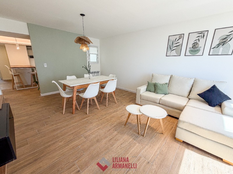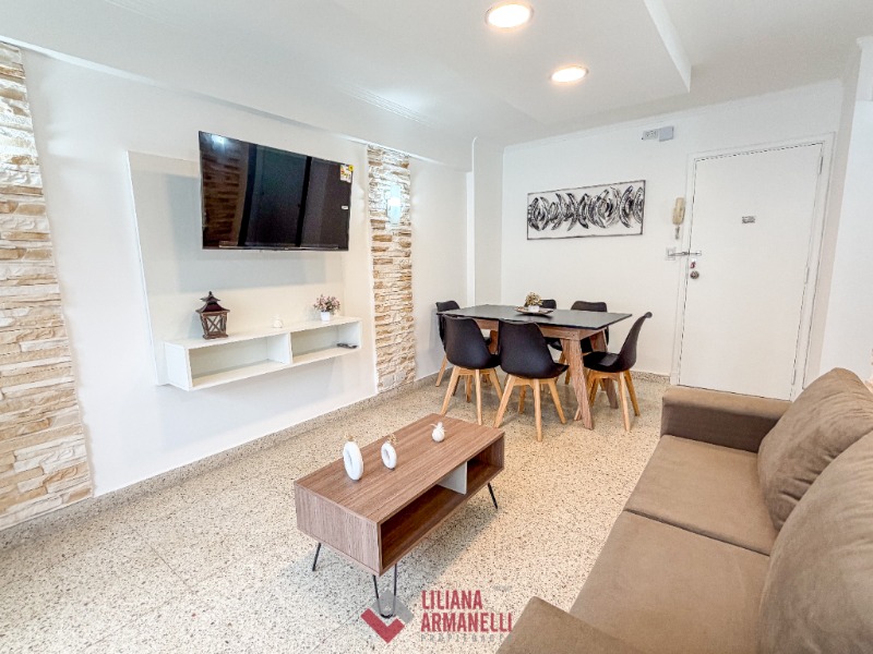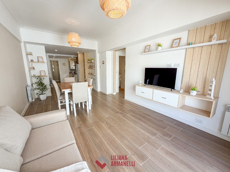 Departamento de 2 ambientes totalmente reciclado. Amplio living comedor. Cocina separada con ventilación natural. Dormitorio con placard. Baño completo con ducha escocesa con hidromasaje 3 jets. Muebles a estrenar. 35 mts. A 200 mts del mar y de Guemes.