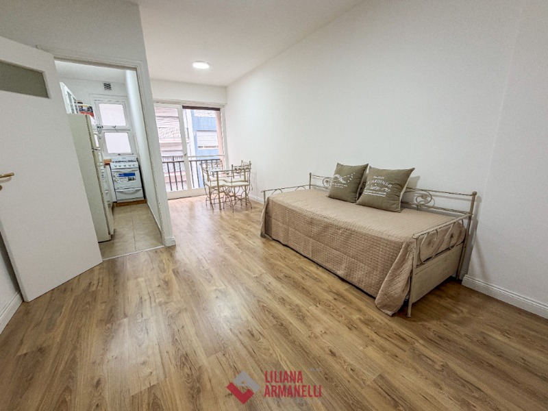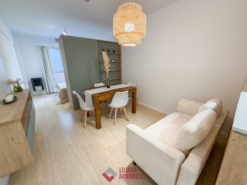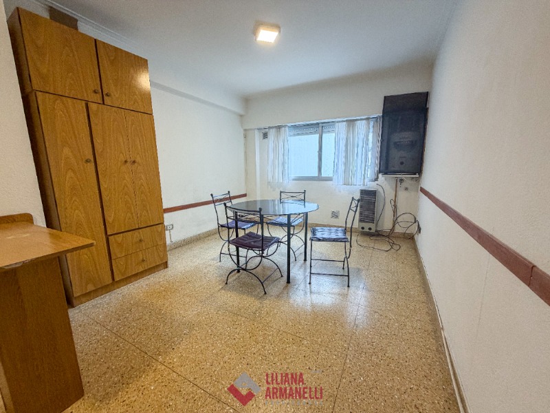 Departamento de 1 ambiente cfte. Amplio. Luminoso. Cocina con barra desayunadora. Placard. Baño completo con bañera. Apto crédito. Ubicado en Entre Ríos y Rivadavia.