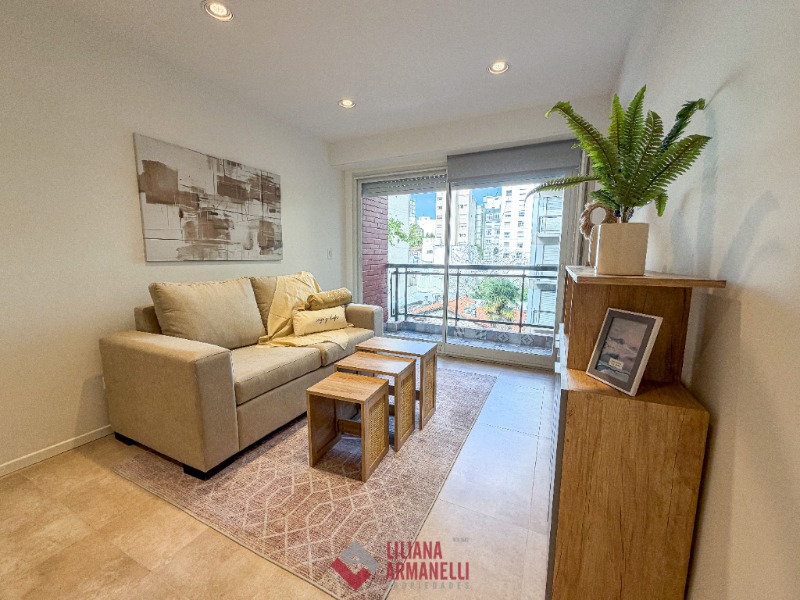 Departamento de 2 ambientes totalmente reciclado. Amplio living comedor a la calle con balcón saliente. Cocina separada con amoblamiento a medida. Patio. Dormitorio con placard. Baño completo con mampara. Muebles a estrenar. 35.26 mts. Aberturas DVH. Puertas premium nuevas con diseño. Vereda de sol. Ubicado en Gascón y Tucumán.