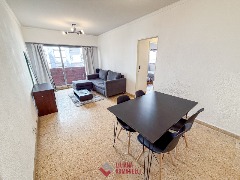Departamento de 3 ambientes. Amplio living comedor a la calle con balcón saliente. Cocina separada con ventilación natural y espacio para lavarropas. 2 Dormitorios a la calle con placares. Baño completo. Amoblado. 61 mts. Ubicado en Corrientes y Rivadavia.