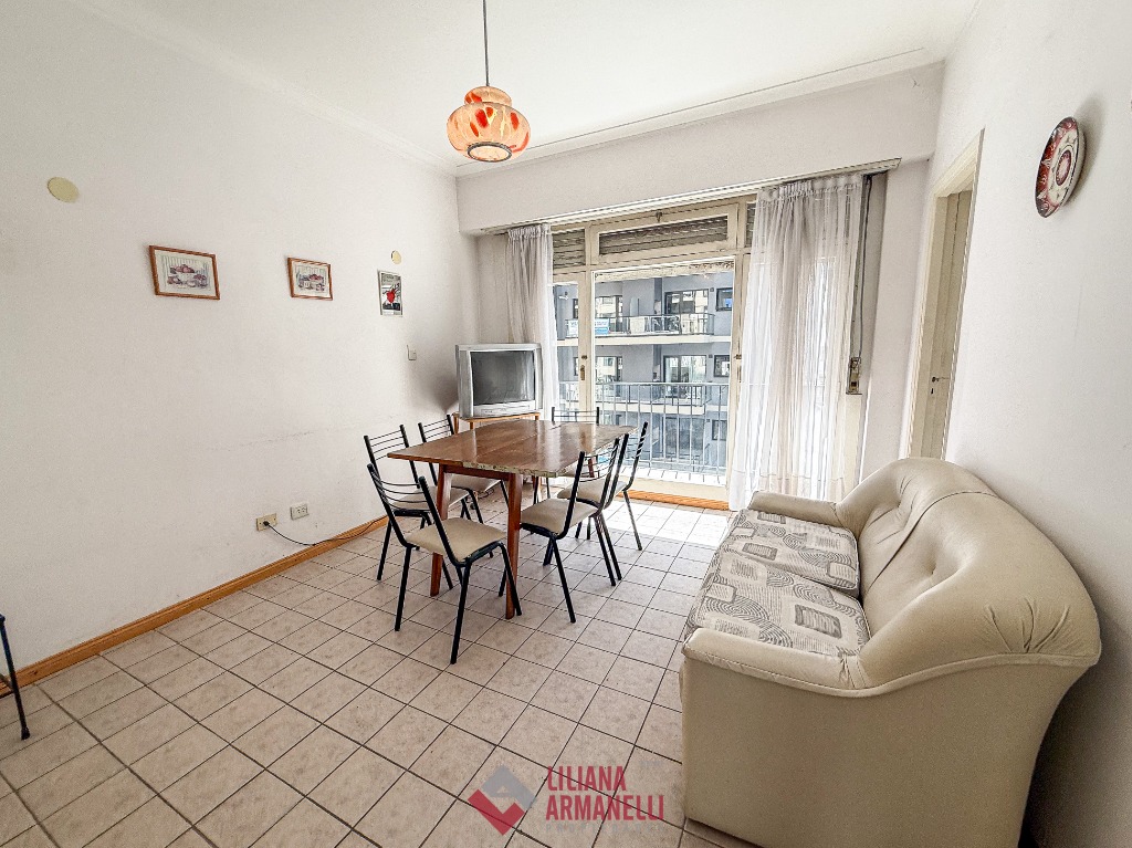 Departamento de 2 ambientes. Amplio living comedor a la calle. Cocina con barra desayunadora. Dormitorio con placard. Baño completo con bañera. 48 mts. Calefacción por radiadores. A 1 cuadra del mar. la Perla.