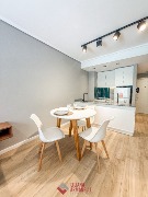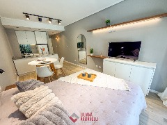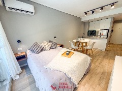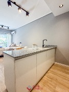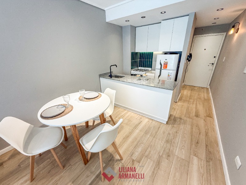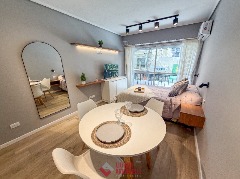 Departamento de 3 ambientes. Totalmente reciclado. Living comedor a la calle. Cocina comedor con barra desayunadora y amoblamiento a medida. Heladera. Lavarropas. Toilette. Dormitorio a la calle con balcón saliente y placard. Hall con escritorio. Segundo dormitorio al cfte con placard. Baño completo con ducha y mampara. Muebles a estrenar. 68 mts. Ubicado en Luro y Santa Fe.