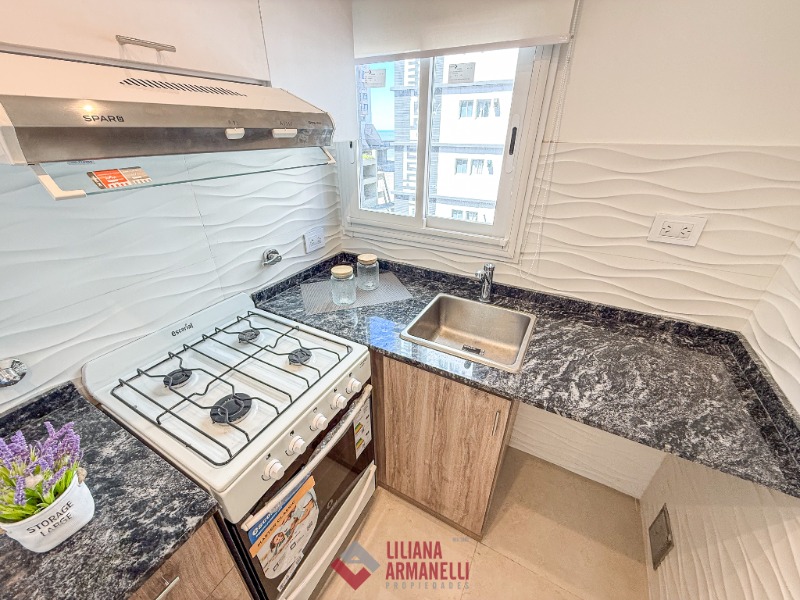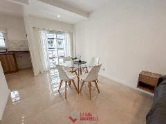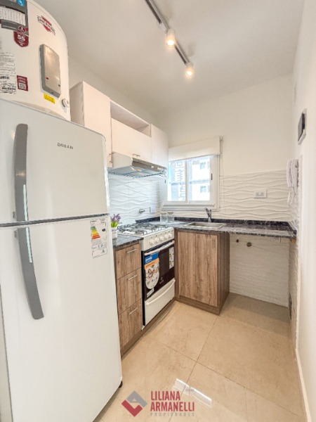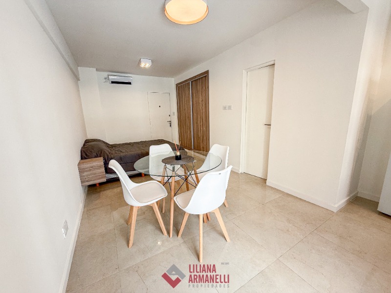 Departamento de 1 ambiente totalmente reciclado. Amplio ambiente a la calle con balcón saliente. Cocina con amoblamiento a medida y ventilación natural. Placard. Baño completo con mampara. Aberturas en DVH. Pisos de porcelanato. Aire frio calor. Muebles a estrenar. 27.75 mts. Ubicado en Entre Rios y Rivadavia.