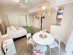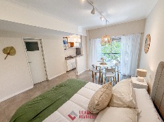 Departamento de 2 ambientes a estrenar. Amplio living comedor a la calle. Balcón saliente. Cocina separada con amoblamiento a medida. heladera. Lavarropas. Toilette. Dormitorio con placard y baño en suite. Muebles a estrenar. 62 mts. Ubicado en Moreno y Buenos Aires.