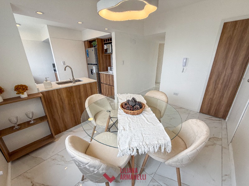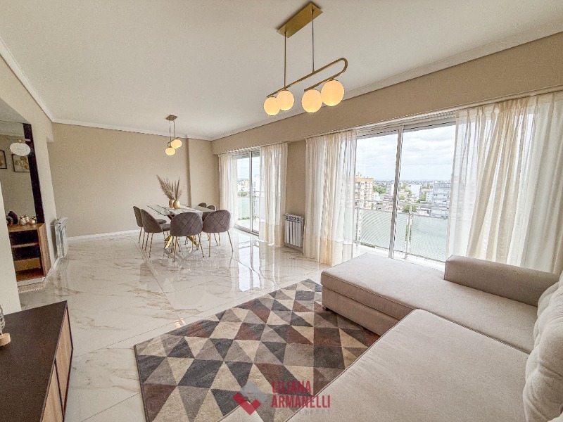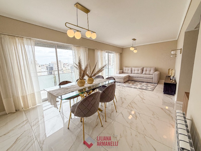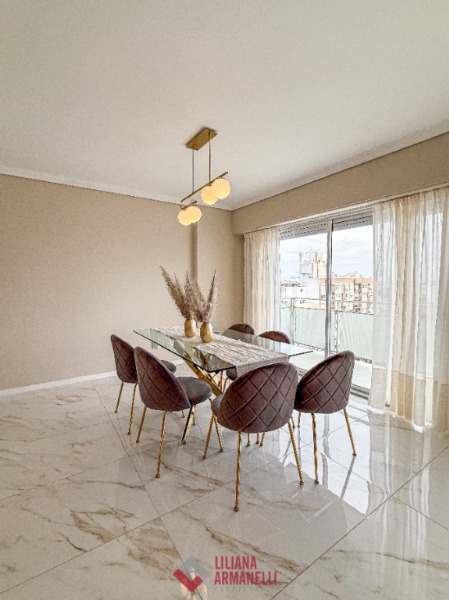 Departamento de 4 ambientes con cochera. Hall de recepción. Amplio living comedor con balcón corrido. Cocina comedor totalmente equipada. Parrilla. Toilette. 3 Dormitorios, el principal con vestidor y balcón saliente. 2 Baños completos. Muebles a estrenar. Calefacción por radiadores. 112 mts. Cochera. Ubicado en Zona Shopping.