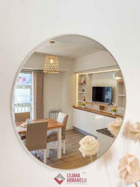Departamento de 3 ambientes totalmente reciclado. Amplio living comedor. Balcón saliente. Cocina con muebles a medida y barra desayunadora. Heladera. Lavarropas. 2 Baños completos. 2 Dormitorios con placares. Calefacción por radiadores. Muebles a estrenar. 71 mts. Aberturas en DVH. Ubicado en Corrientes y Colón.