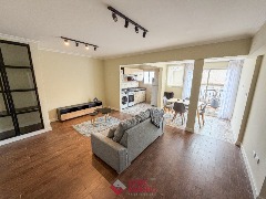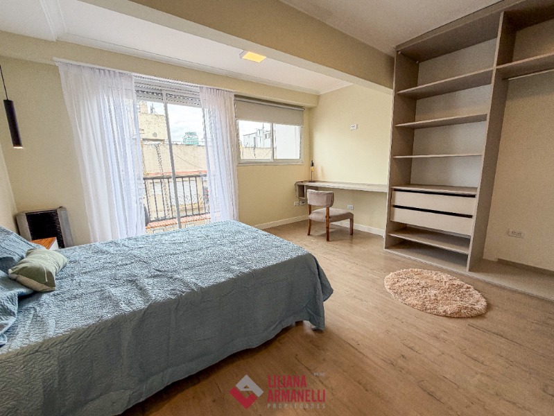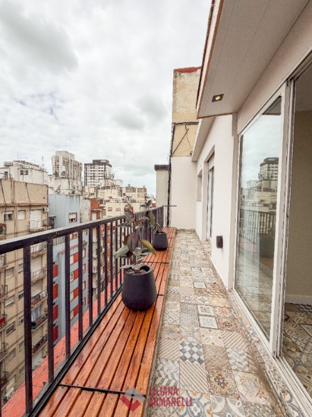 Departamento de 2 ambientes a la calle. Amplio living comedor. Cocina con amoblamiento a medida. Balcón corrido de 9 mts. Dormitorio con amplio placard. Baño completo con box de ducha. 54 mts. Muebles a estrenar. Ubicado en Belgrano y Santa Fé.