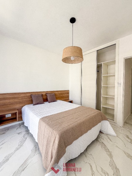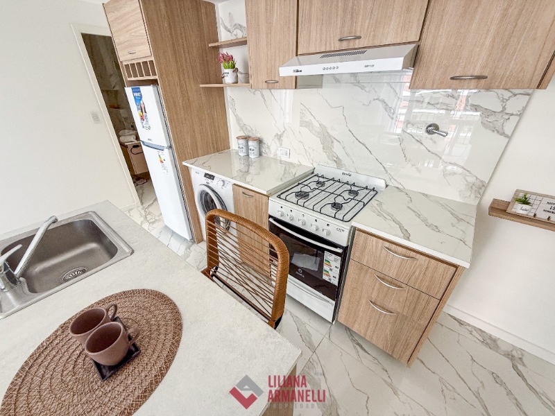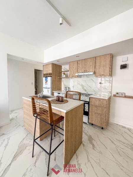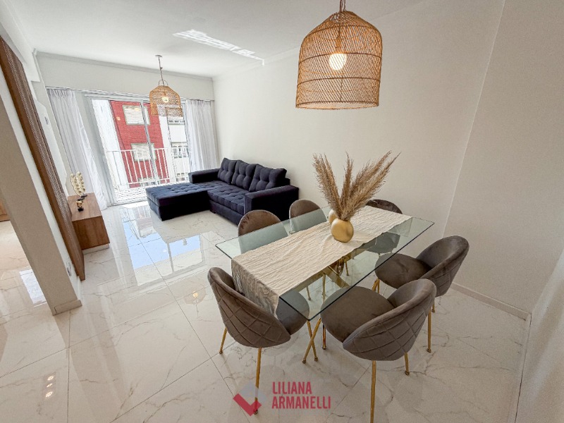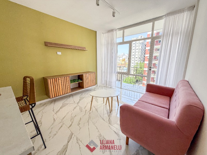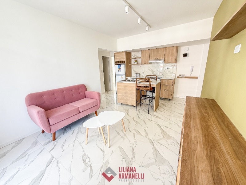 Departamento de 3 ambientes a la calle. Amplio living comedor. Cocina con isla. Heladera. Lavarropas. Balcón corrido. Dormitorio principal con placard y salida al balcón. Segundo dormitorio al cfte. Baño completo con mampara. Muebles a estrenar. 49 mts. Apto crédito. Ubicado en Santiago del Estero y Luro.