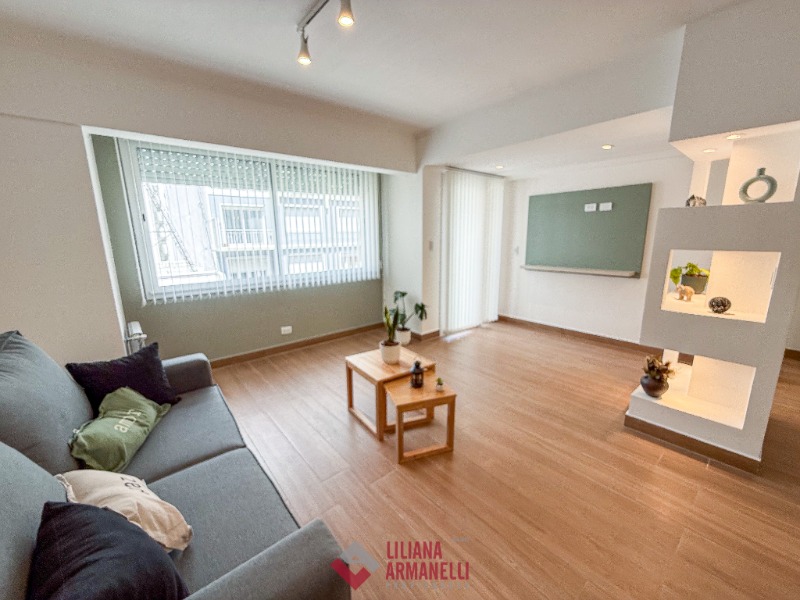 Departamento de 3 ambientes totalmente reciclado. Amplio living comedor. Balcón saliente. Cocina con amoblamiento a medida separada por barra desayunadora. Heladera. Lavarropas. Toilette. Dormitorio principal con placard y salida al balcón. Calefacción por radiadores. Muebles a estrenar. 72 mts totales. 67 mts cubiertos. Ubicado en Bolívar y Santa Fé.