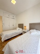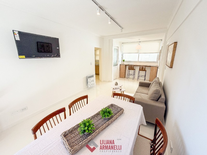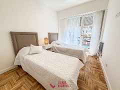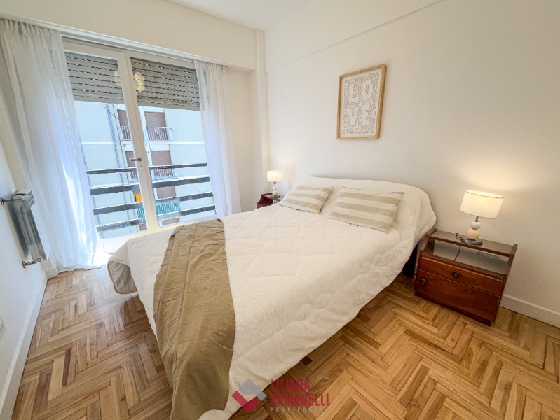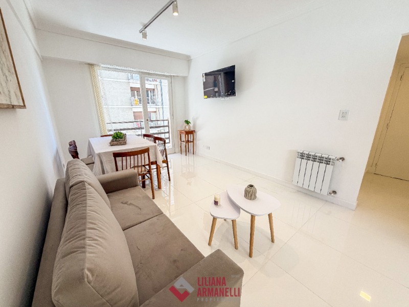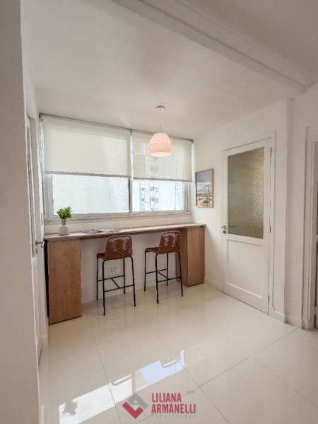 Departamento de 3 ambientes. Amplio living comedor con balcón saliente. Barra desayunadora. Cocina separada con ventilación natural. Dependencia de servicio con baño. Heladera. Lavarropas. 2 Dormitorios a la calle con placares. Baño completo con mampara. Calefacción por radiadores. 70 mts. Amoblado. Edificio con seguridad las 24 hs. Ubicado en Santiago del Estero y Luro.