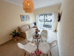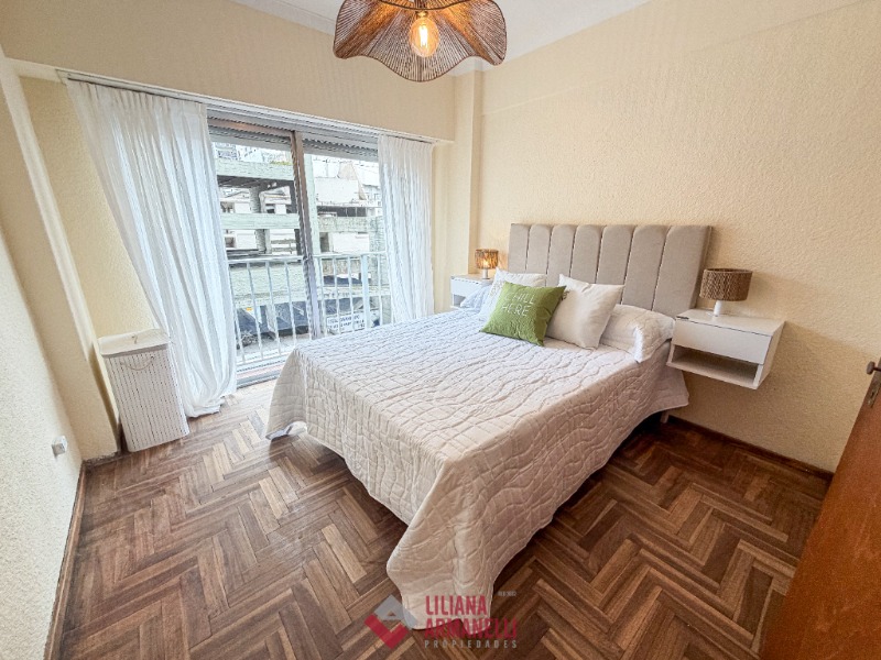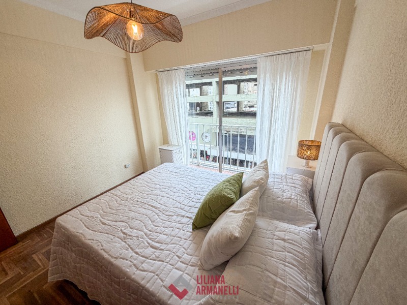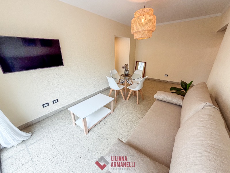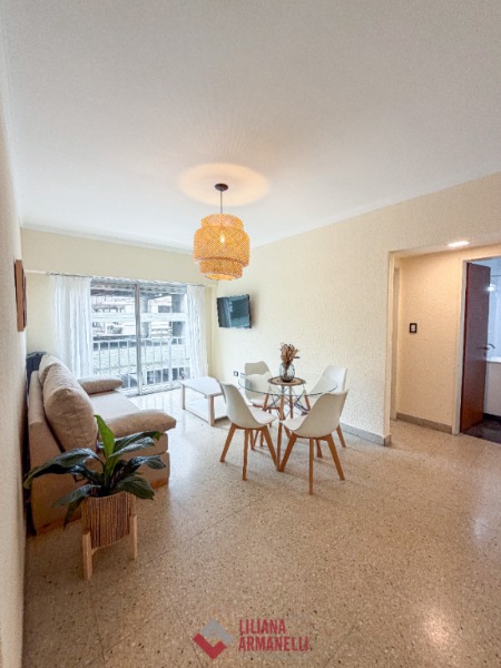 Departamento de 2 ambientes. Amplio living comedor a la calle con balcón saliente. Vista lateral al mar. Cocina separada con ventilación natural. Heladera. Dormitorio a la calle con placard. Baño completo con bañera. Muebles a estrenar. 43 mts. Ubicado en Entre Ríos y Rivadavia.