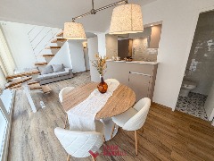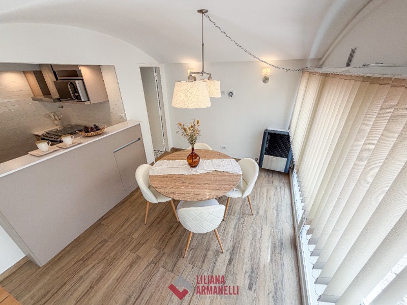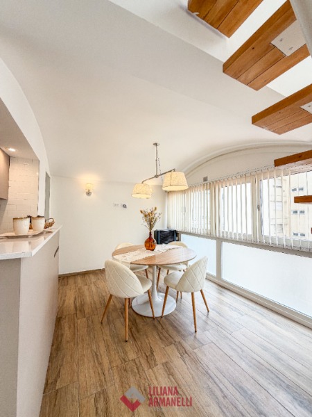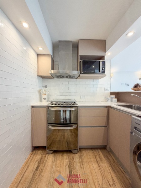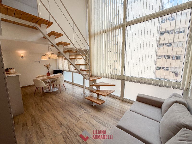 3 Ambientes en dúplex. P.B: Amplio living comedor con ventanal. Cocina separada por barra desayunadora, con amoblamiento a medida. Toilette. P.A: 2 Dormitorios. Baño completo. Muebles a estrenar. 62 mts. Ubicado en San Luis y Rivadavia.