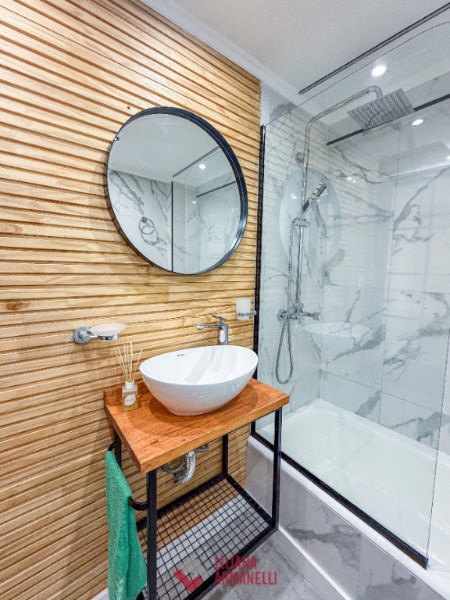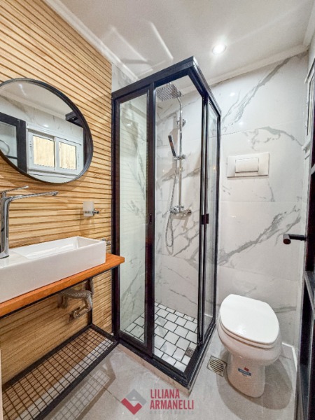 Departamento de 3 ambientes totalmente reciclado. Amplio living comedor a la calle. Balcón saliente. Cocina separada con ventilación natural y amoblamiento a medida. Heladera. Lavarropas. 2 Dormitorios con placares y pisos de parquet plastificados. 2 Baños, uno en suite con box de ducha y el otro con bañera. Muebles a estrenar. 51 mts. Ubicado en Moreno y San Luis.