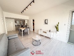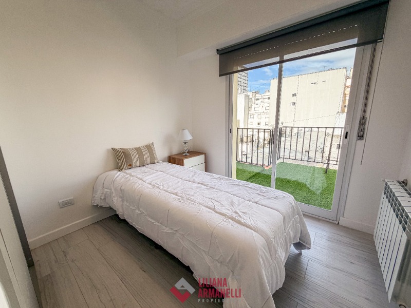 Departamento de 4 ambientes con dependencia de servicio. Amplio living comedor. Terraza. Cocina separada por barra desayunadora. Heladera. Lavarropas. Toilette. Dependencia de servicio. 3 Dormitorios, el principal con salida a la terraza. Baño completo con mampara. Calefacción por radiadores. Muebles a estrenar. Aberturas DVH. 87 mts. Ubicado en San Martin y Corrientes.