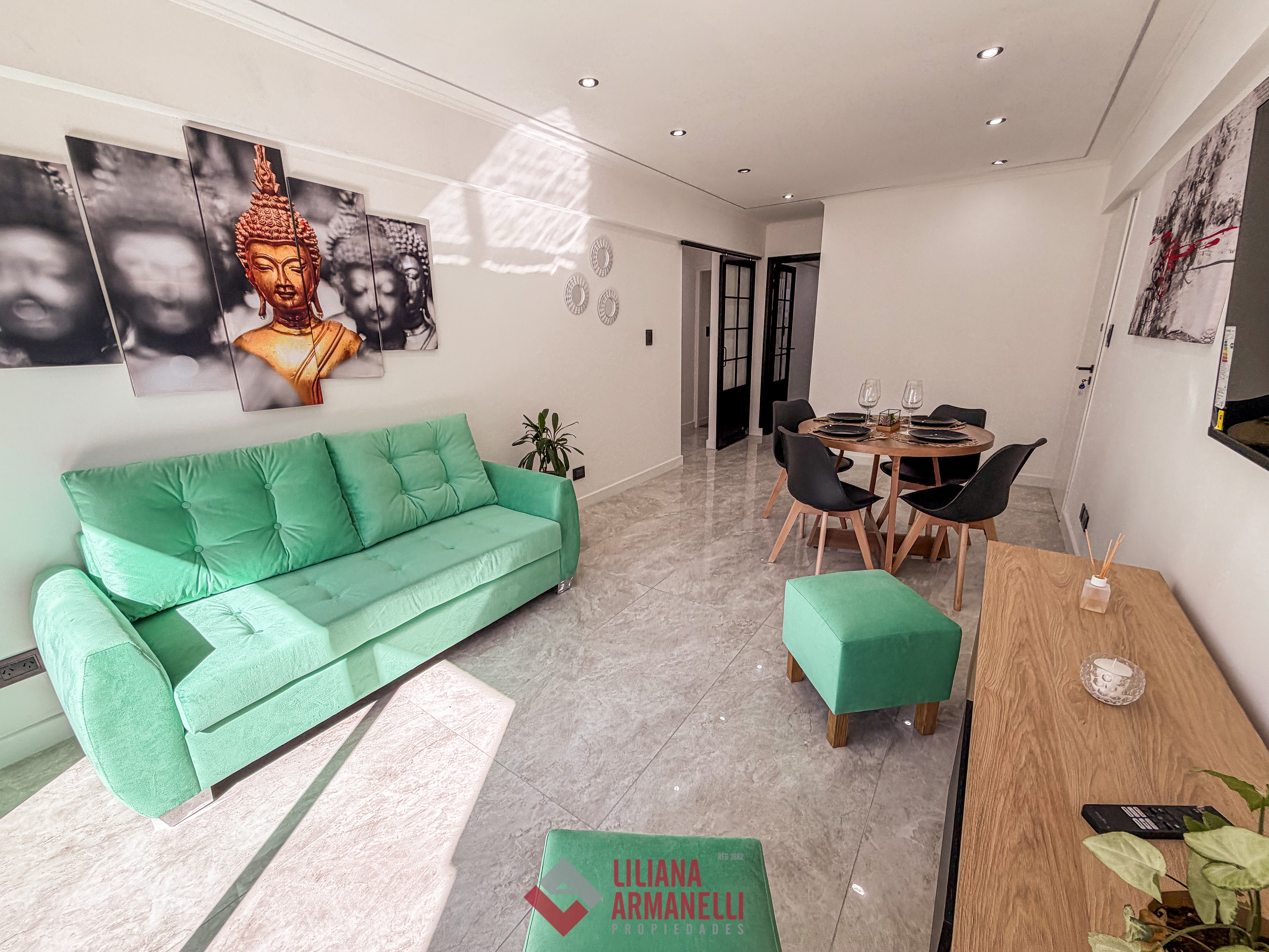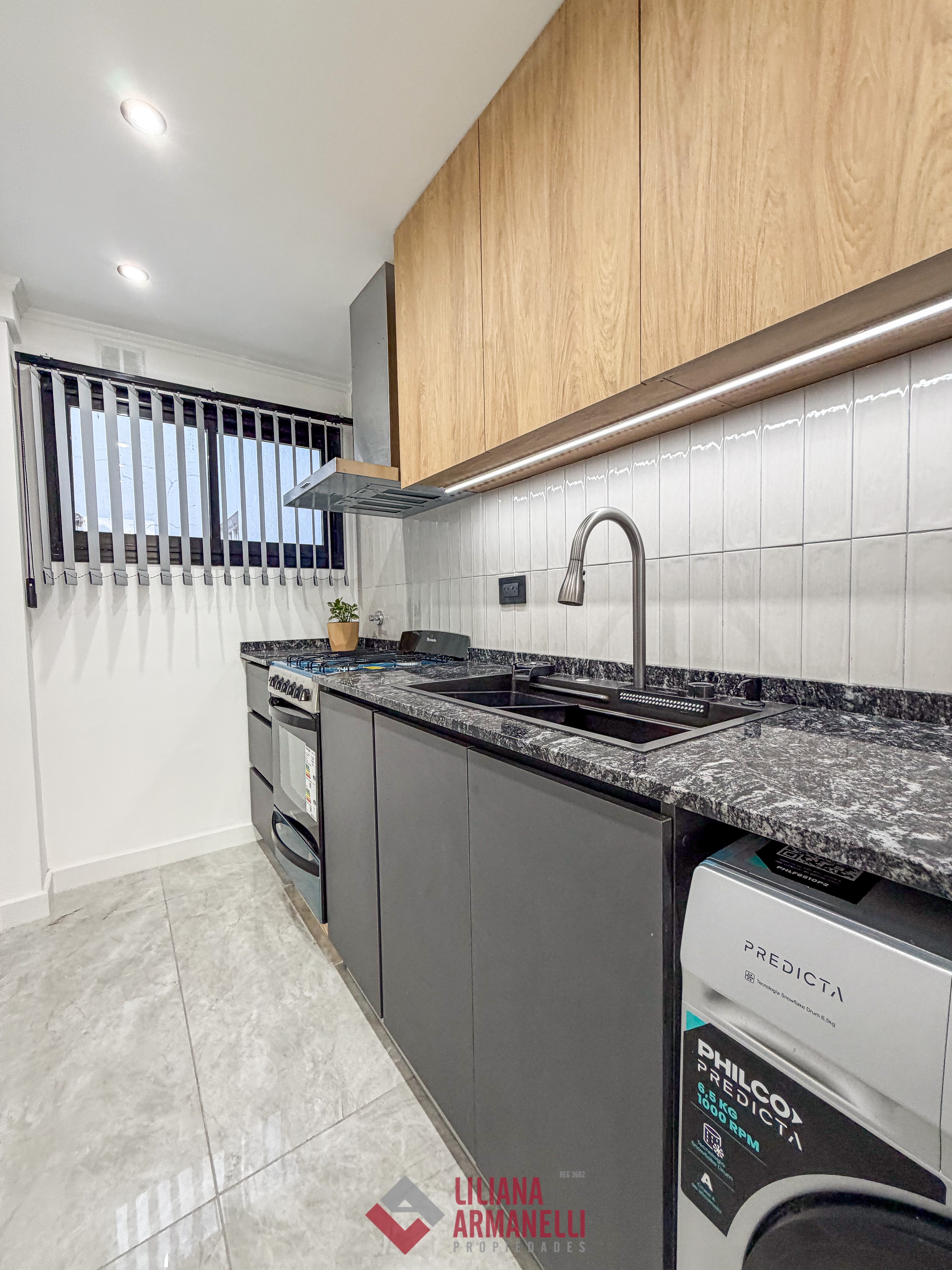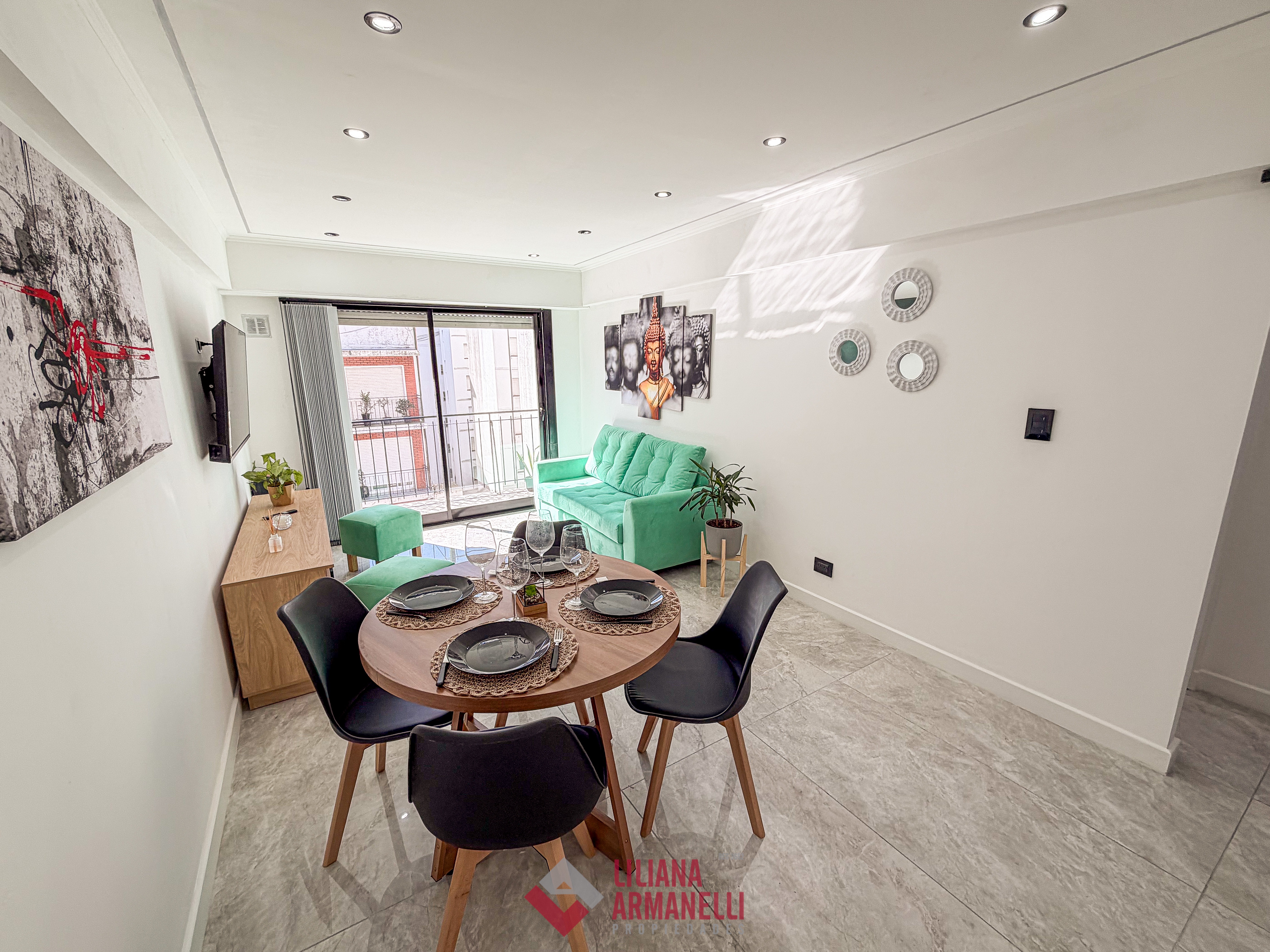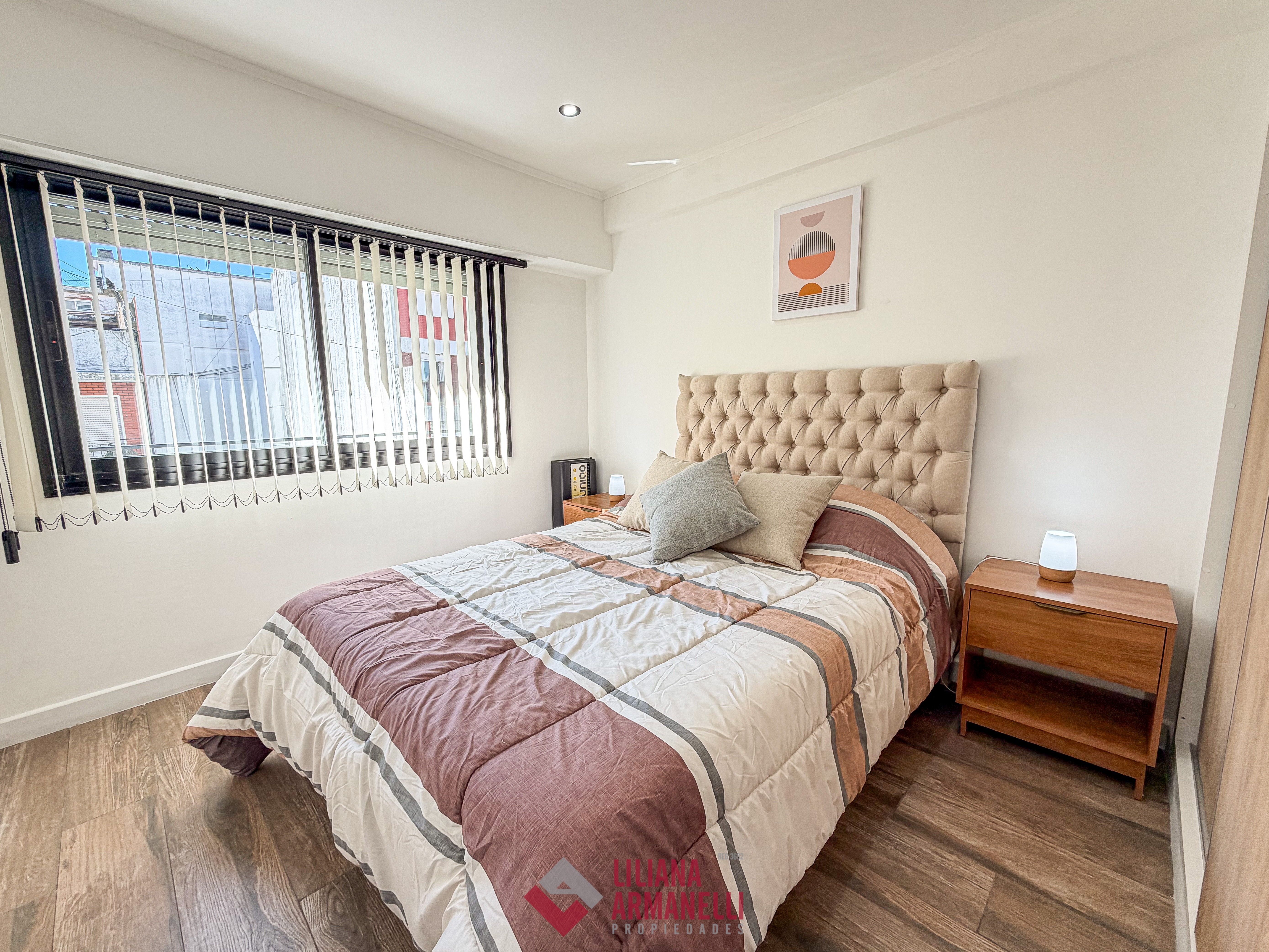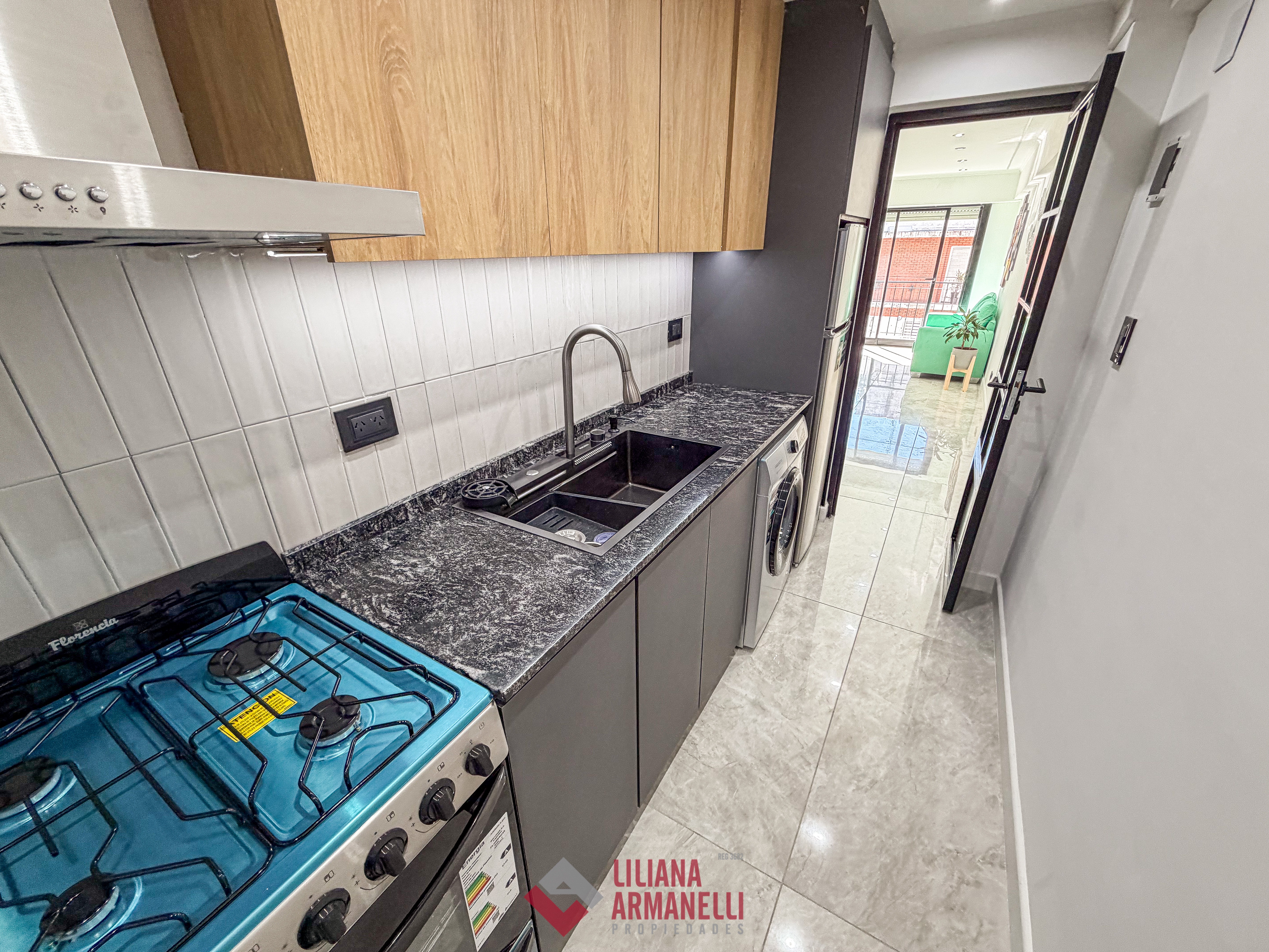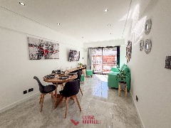 Departamento de 3 ambientes totalmente reciclado. Amplio living comedor a la calle con balcón corrido. Cocina separada con ventilación natural y amoblamiento a medida. Heladera. Lavarropas. Dormitorio a la calle con placard y baño en suite. Segundo dormitorio al cfte con placard. Baño de servicio con ducha. Muebles a estrenar. Vereda de sol. Ubicado en Brown y Corrientes.