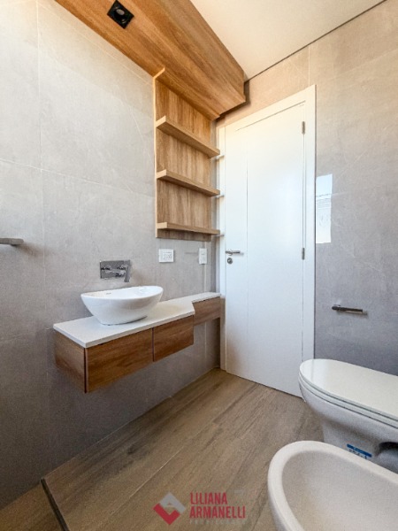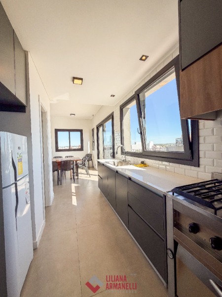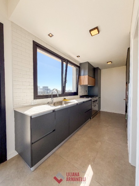 Piso de 3 ambientes a estrenar. Amplio living comedor. Cocina con barra y amoblamiento a medida. Balcón terraza con parrilla. Toilette. Lavadero con balcón saliente. 2 Dormitorios con baños en suites. Quincho con baño, terraza y balcón. 2 Cocheras. 99 mts. Calefacción por losa radiante. Ubicado en Chauvín.