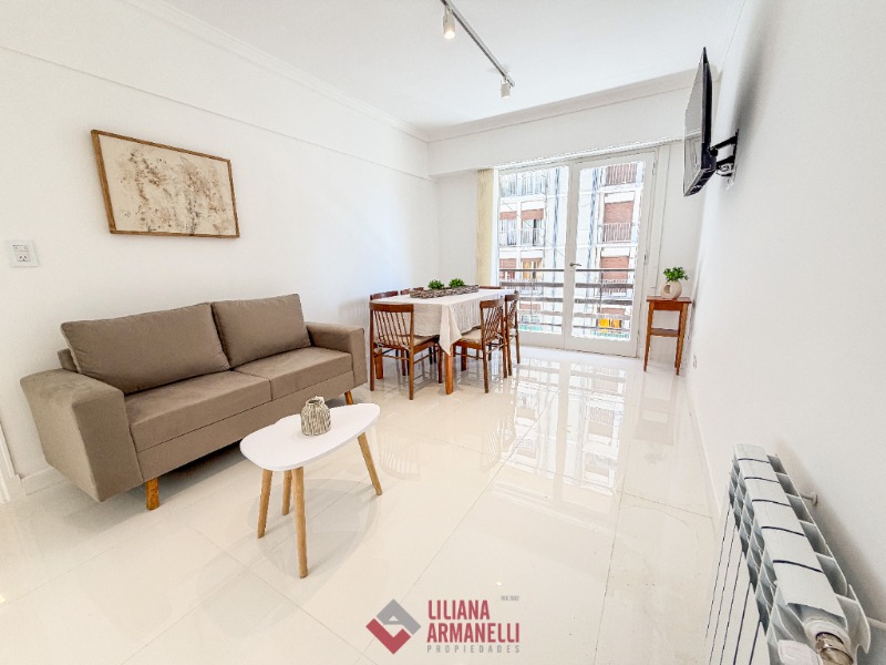 Departamento en pozo zona La Perla. Living-comedor a la calle con balcón saliente. Cocina con amoblamiento a medida. Baño completo con revestimiento en cerámico/porcelanato. Dos dormitorios con pisos de porcelanato. 55 mts.