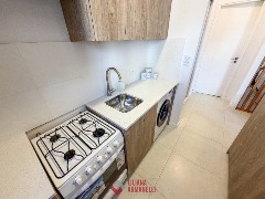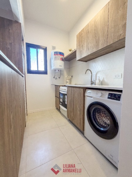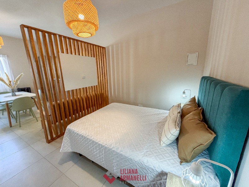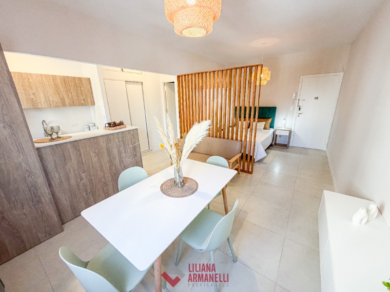 Departamento de 1 ambiente al lateral. Totalmente reciclado. Cocina separada con barra desayunadora y amoblamiento a medida. heladera. Lavarropas. Placard. Baño completo con mampara. Muebles a estrenar. Súper luminoso. 32.5 mts. Ubicado en La Perla.