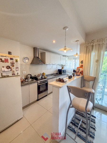 Departamento de 3 ambientes a la calle. Amplio living comedor. Balcón saliente aterrazado con cerramiento. Cocina a la calle separada por barra desayunadora. Baño completo. Dormitorio principal con baño en suite super amplio. Segundo dormitorio al cfte amplio con placard. Quincho de uso común. Baulera. 93 mts. Ubicado en Bolívar y España.