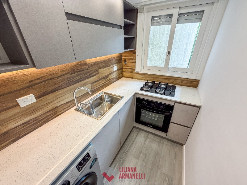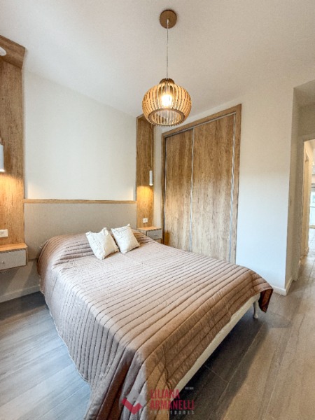 Departamento de 2 ambientes totalmente reciclado. Amplio living comedor. Balcón saliente. Cocina separada con amoblamiento a medida. Heladera. Lavarropas. Dormitorio con placard. Baño completo con mampara. Muebles a estrenar. 45 mts. Ubicado en Gascón y Corrientes.