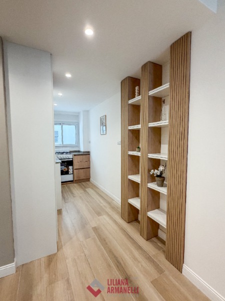 Departamento de 3 ambientes totalmente reciclado. Amplio living comedor a la calle con balcón saliente. Cocina con amoblamiento a medida y ventilación natural. 2 Dormitorios con placares. Baño completo con mampara. Puertas premium nuevas con diseño. Aberturas DVH. Muebles a estrenar. Cortinas a medida. 52.97 mts. Ubicado en Santa Fe y Brown.