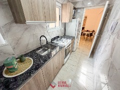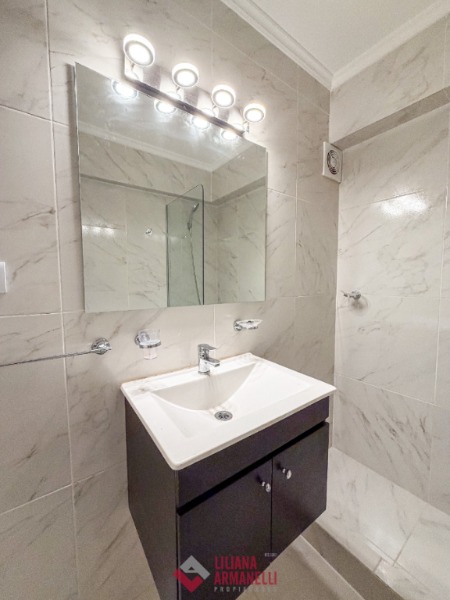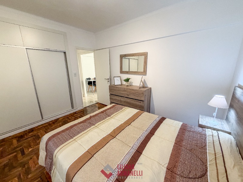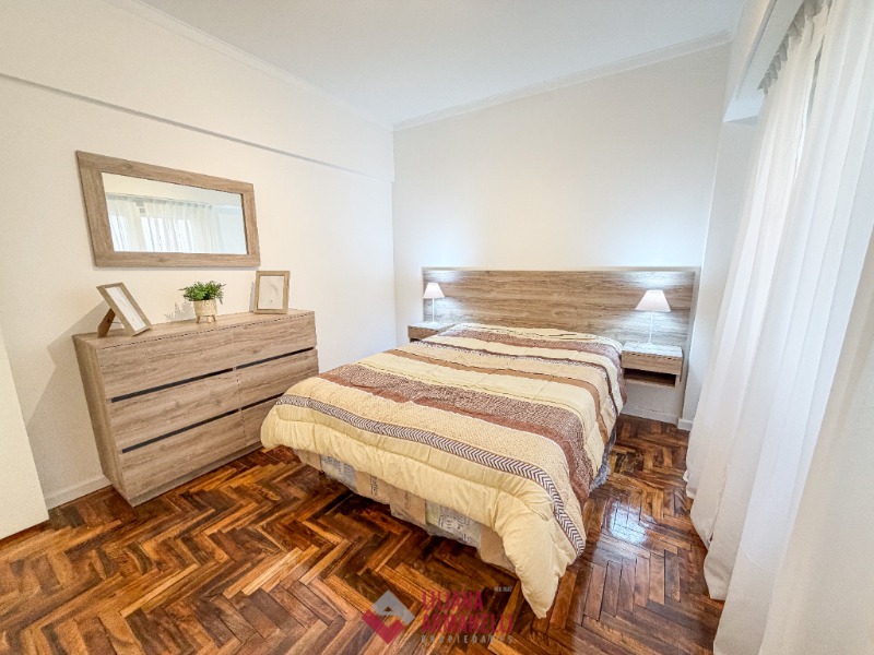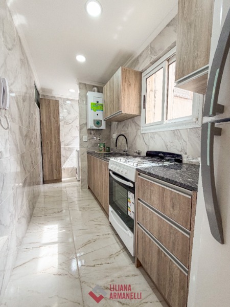 Departamento de 2 ambientes reciclado. Amplio living comedor. Cocina separada con ventilación natural. Lavadero con lavarropas. Heladera. Dormitorio con placard. Baño completo con mampara. Muebles a estrenar. Ubicado en Brown y Corrientes.