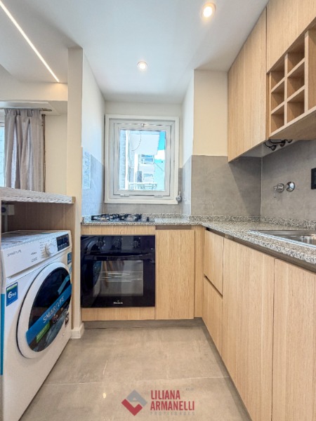 2 Ambientes reciclado. Amplio living comedor. Cocina con amoblamiento a medida. Heladera. Lavarropas. Dormitorio con placard. Baño completo. Muebles a estrenar. 37 mts. Ubicado en Gascón y Corrientes.