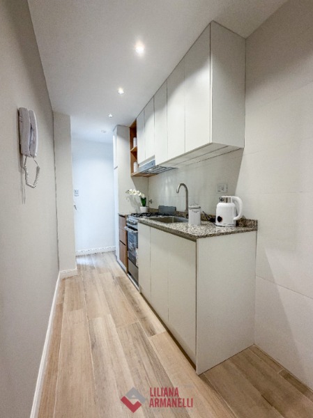 Departamento de 2 ambientes totalmente reciclado. Amplio living comedor a la calle con balcón saliente. Cocina separada con amoblamiento a medida. Patio. Dormitorio con placard. Baño completo con mampara. Muebles a estrenar. 35.26 mts. Aberturas DVH. Puertas premium nuevas con diseño. Vereda de sol. Ubicado en Gascón y Tucumán.