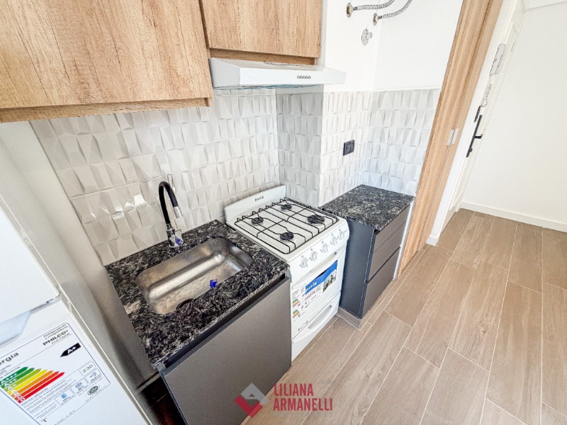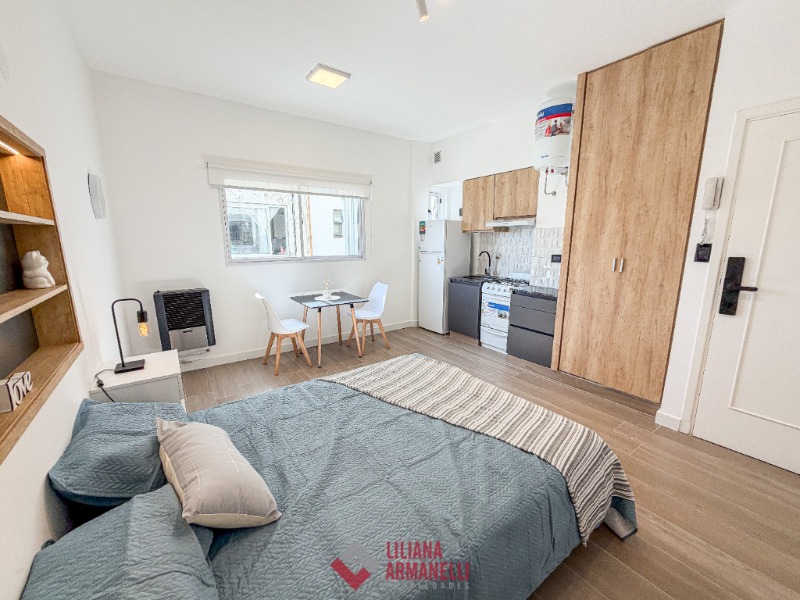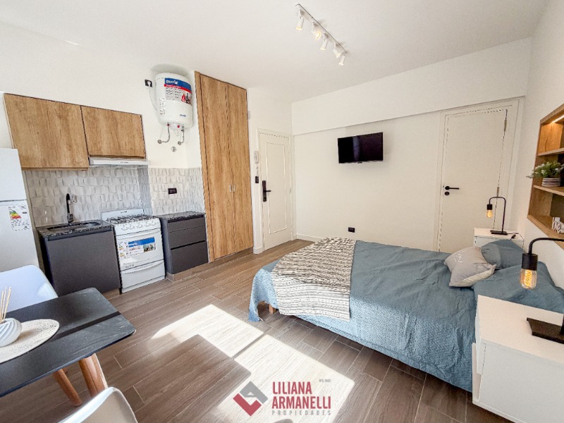 Departamento de 1 ambiente totalmente reciclado. Lateral abierto. Súper luminoso. Cocina con amoblamiento a medida. Heladera. Lavarropas. Placard. Baño completo. Muebles a estrenar. 20 mts. Cerradura electronica. Ubicado en Alberti y Tucumán.