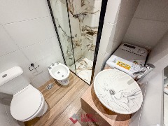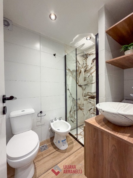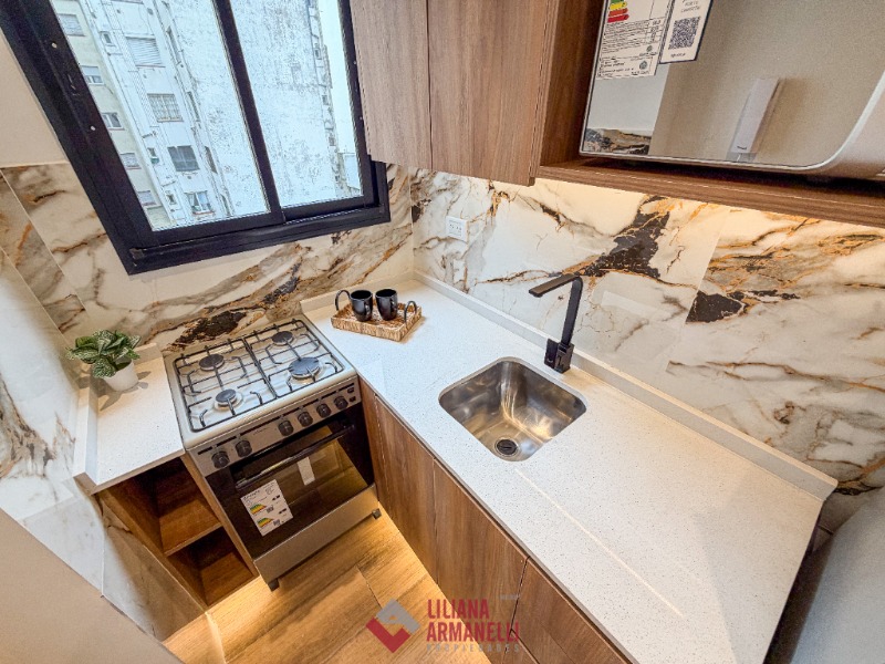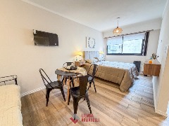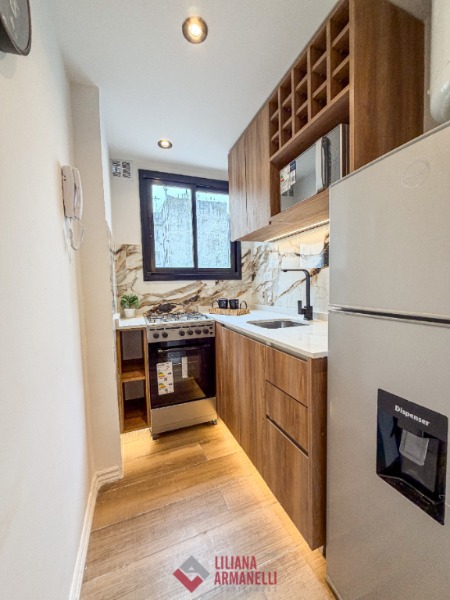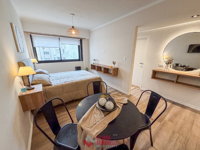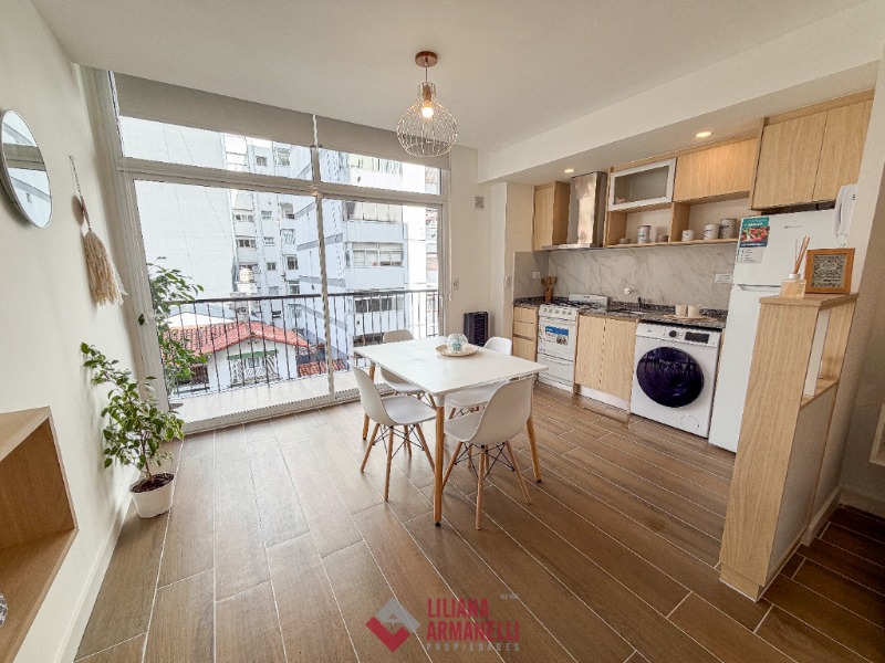 Departamento de 1 ambiente totalmente rciclado. Amplio. Cocina separada con ventilación natural. Heladera. Lavarropas. Microondas. Placard. Súper luminoso. Baño completo con mampara. Muebles a estrenar. 28 mts. Ubicado en Falucho y Santa Fé.