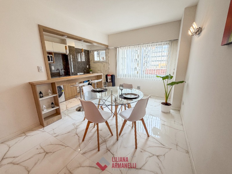 Amplio ambiente a estrenar en Perla Norte muy luminoso. Tiene balcón saliente con vista al mar. La cocina posee amoblamiento a medida, y tiene baño completo. 30 mts.