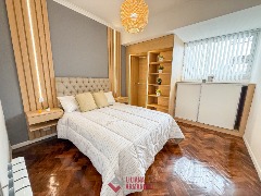 Departamento de 3 ambientes totalmente reciclado. Amplio living comedor a la calle con balcón. Cocina con amoblamiento a medida. Heladera. Lavarropas. Toilette. Dormitorio a la calle con placard y piso de parquet. Baño completo. Segundo dormitorio con placard, piso de parquet y escritorio. Calefacción por radiadores. Muebles a estrenar. 54 mts. Ubicado en Paseo Aldrey.