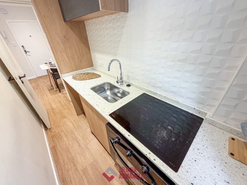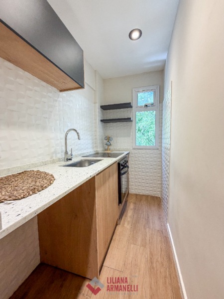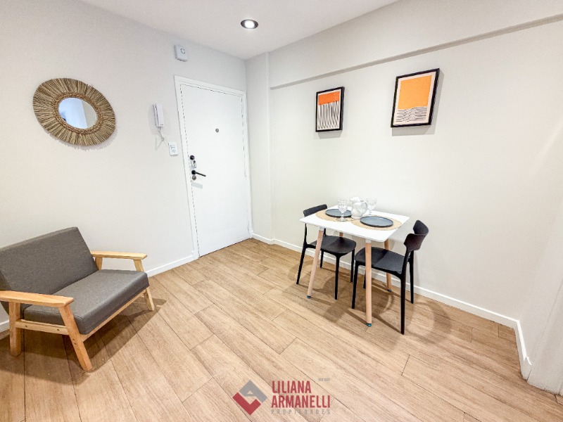 Departamento de 1 ambiente totalmente reciclado. Amplio ambiente desplazado. A la calle. Cocina separada con ventilación natural y amoblamiento a medida. Placard. Baño completo con mampara. Muebles a estrenar. 24 mts. Ubicado en Lamadrid y Falucho.