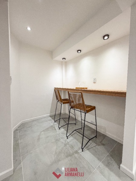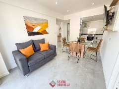 Departamento de 3 ambientes reciclado. Amplio living comedor con balcón saliente. Cocina con amoblamiento a medida y barra desayunadora. Heladera. Lavarropas. Toilette. 2 Dormitorios con placares. Espacio de escritorio. Baño completo con mampara. Muebles a estrenar. 59 mts. Ubicado en Plaza Colón.