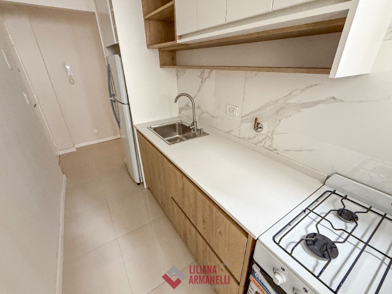Departamento de 2 ambientes reciclado. Amplio living comedor a la calle. Balcón saliente. Cocina separada con amoblamiento a medida. Lavadero. Heladera. Lavarropas. Dormitorio con placard. Baño completo con mampara. 42 mts. Muebles a estrenar. Ubicado en Plaza Colón.