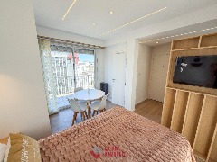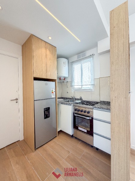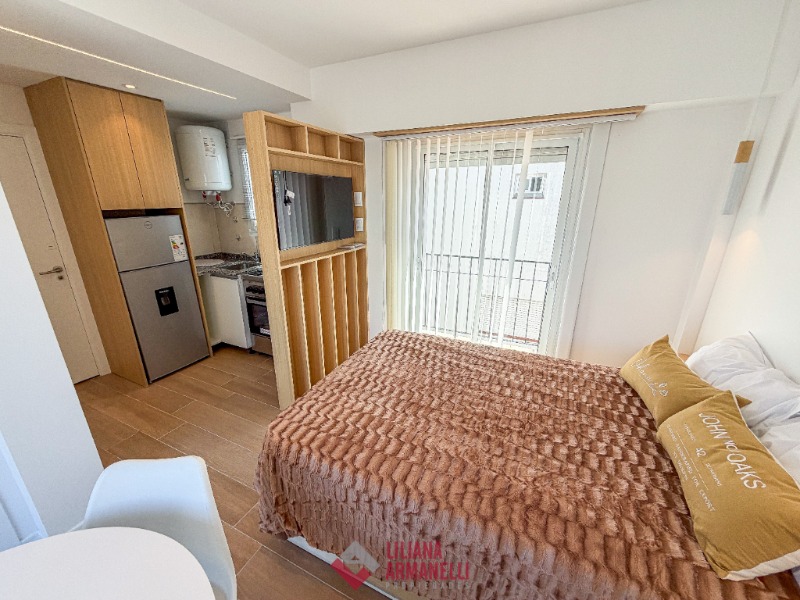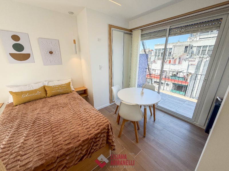 Departamento de 1 ambiente reciclado. Amplio. Cocina con amoblamiento a medida. Heladera. Placard. Balcón terraza. Balcón al cfte. Baño completo con mampara. Muebles a estrenar. 28 mts. Ubicado en Plaza Colón.