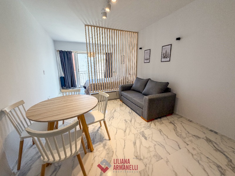 Departamento de 1 ambiente a la calle. Reciclado. Balcón saliente. Vista lateral al mar. Cocina con amoblamiento a medida. Placard. Baño completo. Vereda de sol. 33 mts. Ubicado en Punta Iglesias.