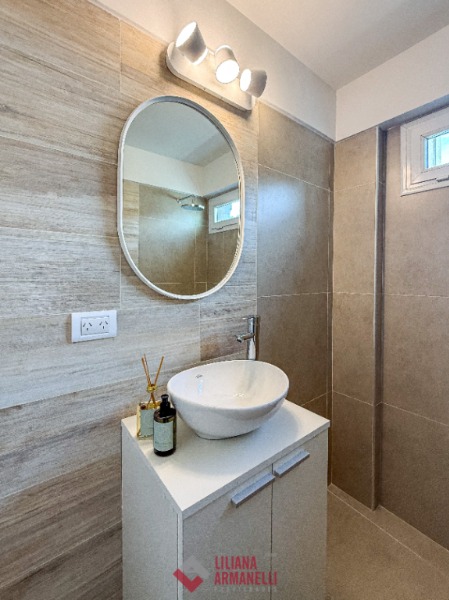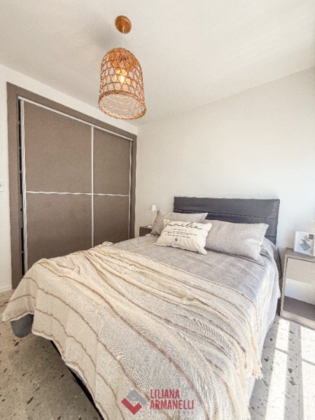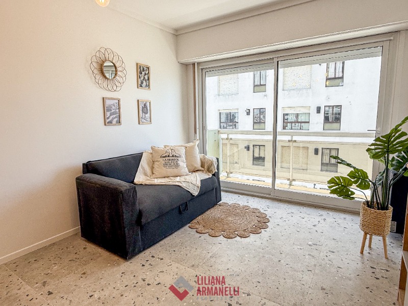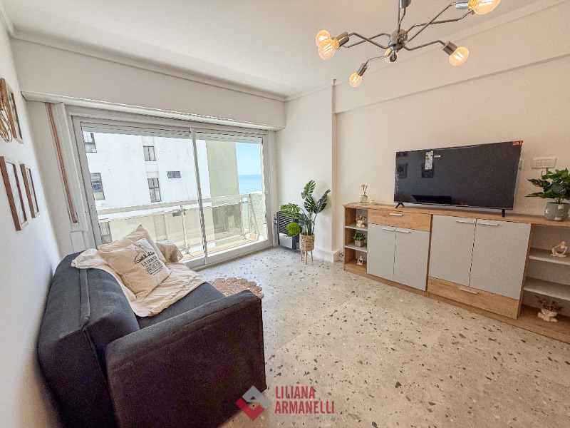 Departamento de 2 ambientes totalmente reciclado. Amplio living comedor. Balcón saliente con vista lateral al mar. Cocina separada con ventilación natural y amoblamiento a medida. Heladera. Lavarropas. Dormitorio con placard. Baño completo. Muebles a estrenar. 40 mts. ubicado en Corrientes y Luro.