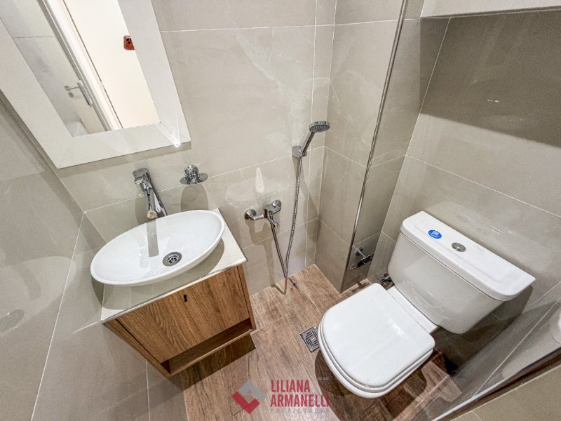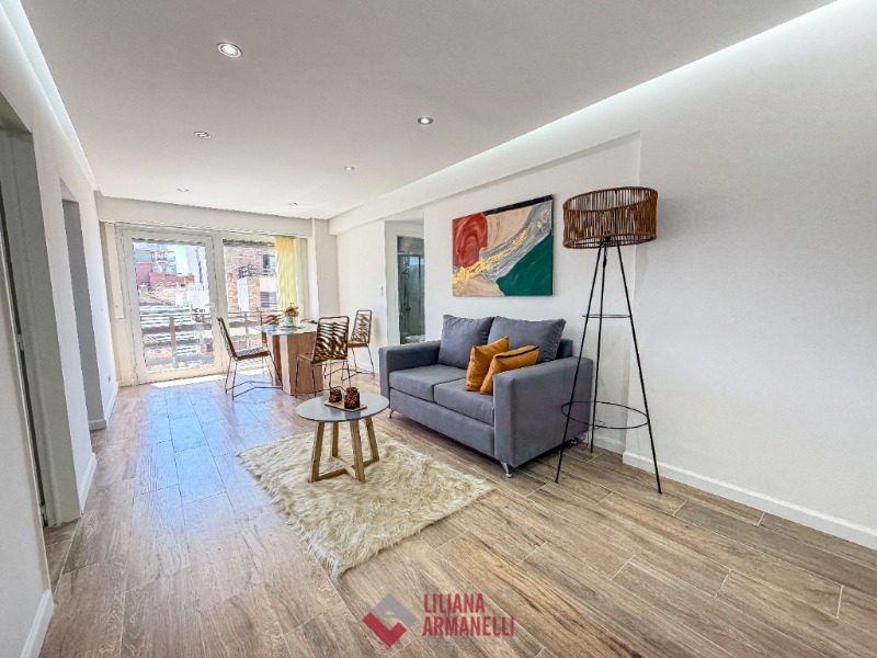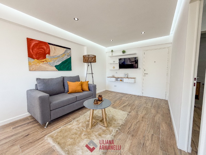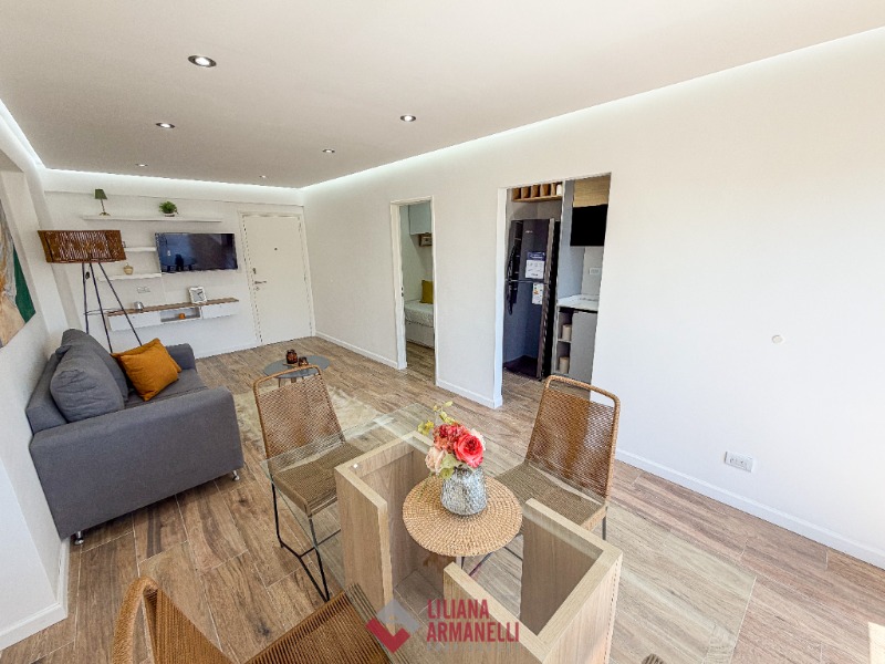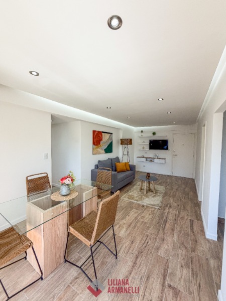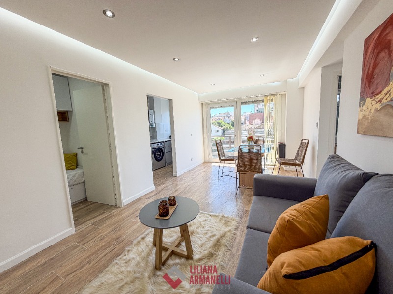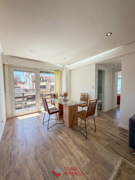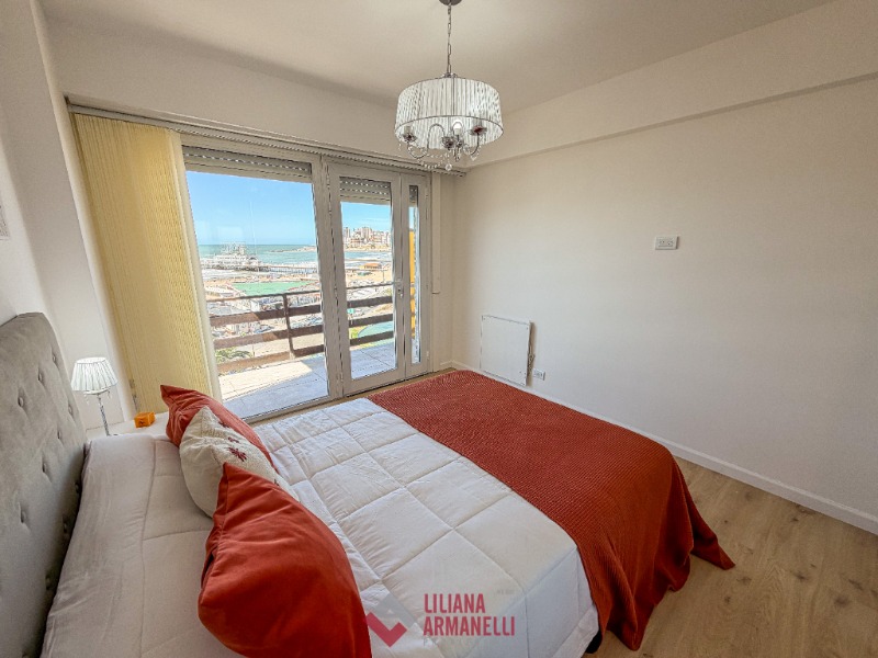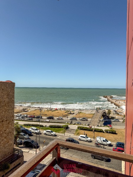 2 Ambientes con dependencia y vista al mar. Amplio living comedor a la calle con balcón saliente. Cocina separada con ventilación natural y amoblamiento a medida. Heladera. Lavarropas. Dependecia de servicio con baño. Dormitorio a la calle con placard, balcón saliente y vista al mar. Baño completo con mampara. Muebles a estrenar. 58 mts. Cochera doble. Ubicado en Punta Iglesias.
