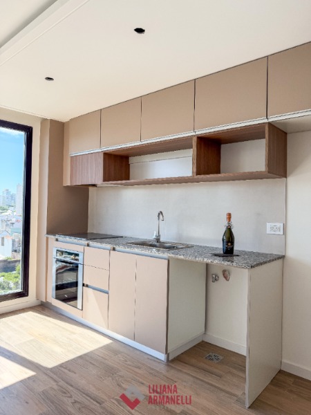 Departamento de 1 ambiente a estrenar. Amplio. Cocina con amoblamiento a medida. Espacio para lavarropas. Gran ventanal. Placard. Baño completo con mampara. Calefacción por losa radiante. Pre instalación de aire acondicionado. Aberturas DVH. Edificio con quincho. 32 mts. Ubicado en San José.