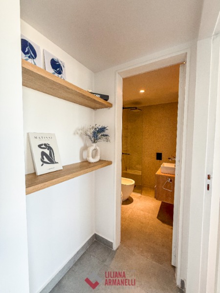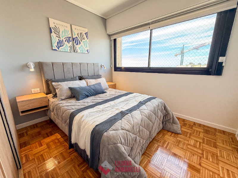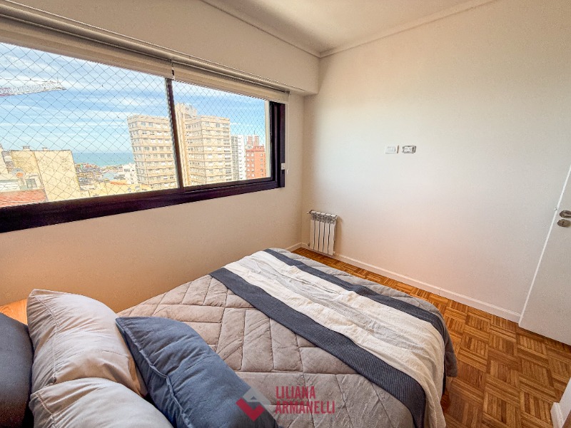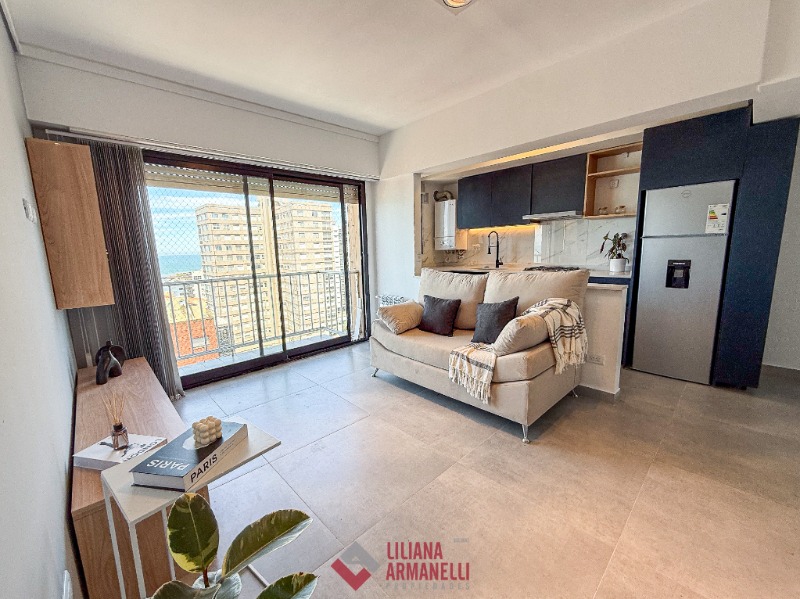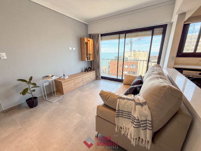 Departamento de 2 ambientes con vista al mar. Amplio living comedor a la calle. Balcón saliente. Cocina separada por barra desayunadora. Heladera. Lavarropas. Dormitorio con placard a medida. Baño completo con mampara. Calefacción por radiadores. Muebles a estrenar. 42 mts. Cochera opcional U$S 24.000.- Torreón del Monje.