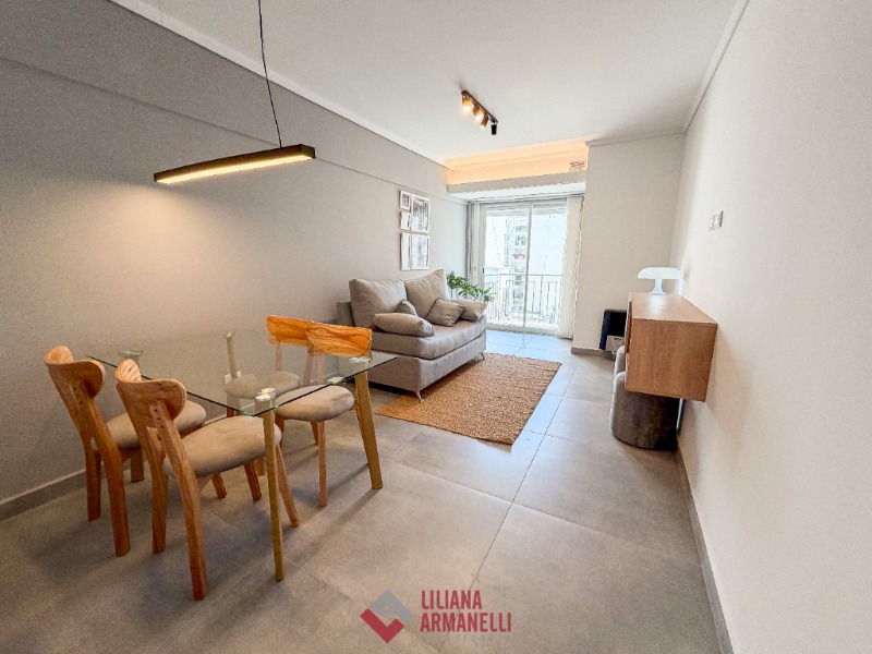 Dpartamento de 2 ambientes totalmente reciclado. Amplio living comedor a la calle con balcón corrido. Cocina con barra desayunadora y ventilación natural. Dormitorio a la calle con placard. Baño completo con mampara. Muebles a estrenar. Aberturas DVH. Vereda de sol. 45.83 mts. Ubicado en Colón y Santa Fé.