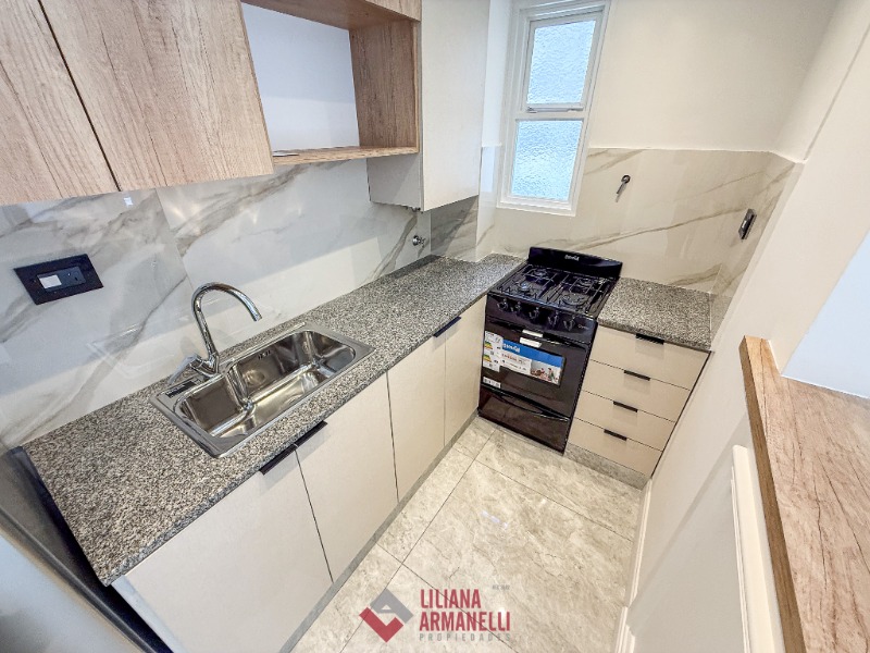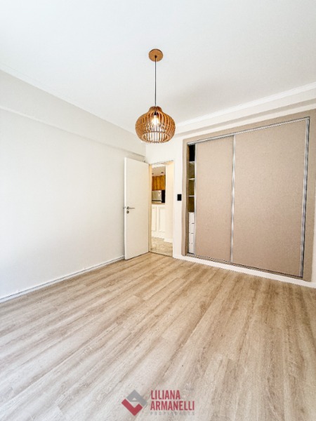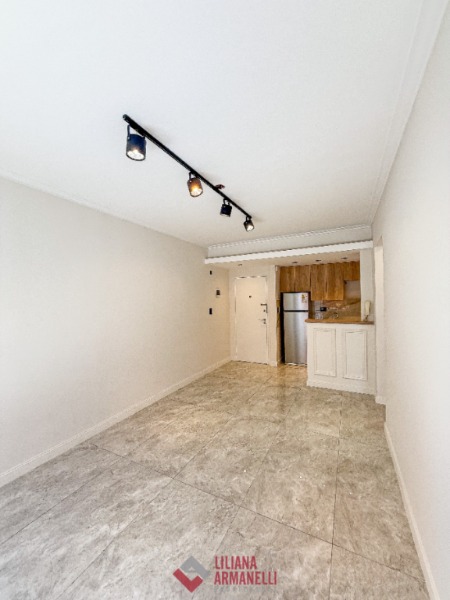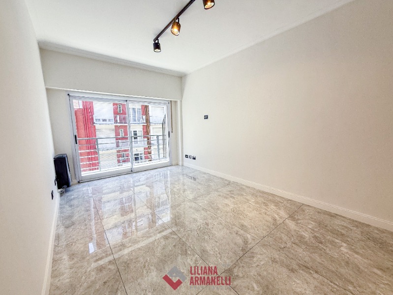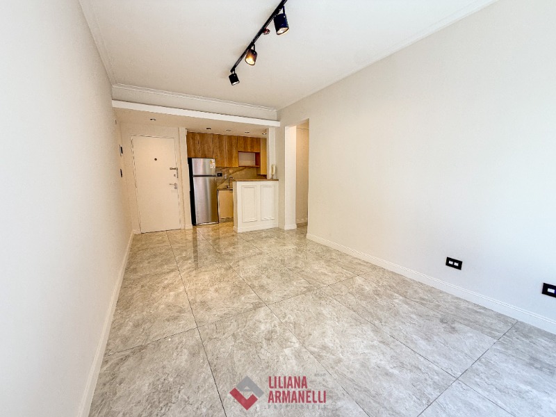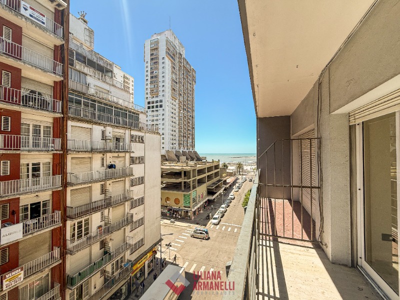 Departamento de 2 ambientes totalmente reciclado. Amplio living comedor. Balcón corrido con vista lateral al mar. Dormitorio con placard y salida al balcón. Baño completo. Vereda de sol. Cochera. 47 mts. Ubicado en Entre Ríos y Rivadavia.