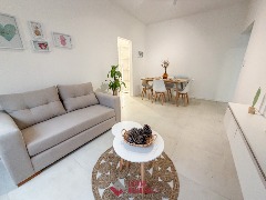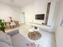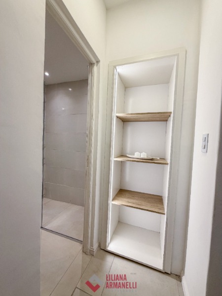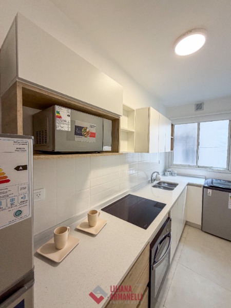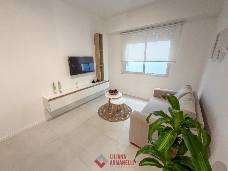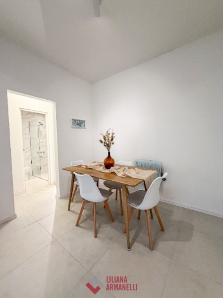 Departamento de 2 ambientes cfte. Amplio living comedor. Cocina separada con ventilación natural. Heladera. Lavarropas. Dormitorio con placard. Baño completo con mampara. Muebles a estrenar. 40 mts. Ubicado en Corrientes y Rivadavia.