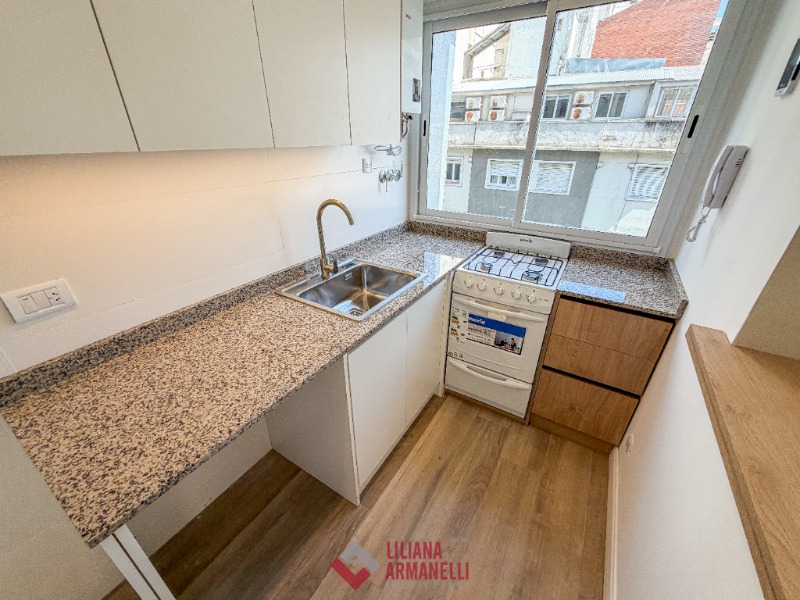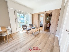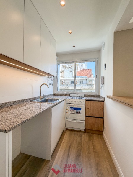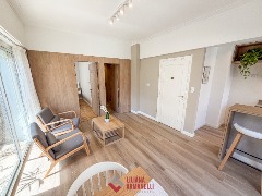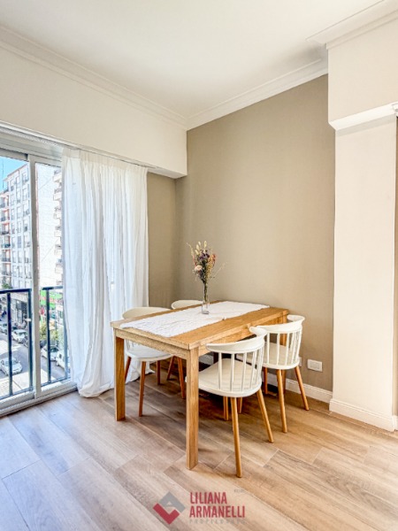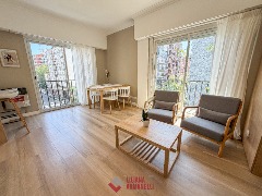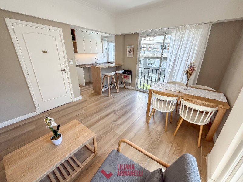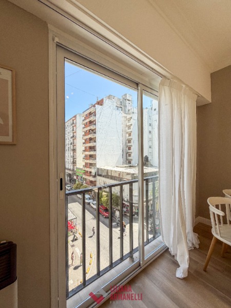 Departamento de 2 ambientes totalmente reciclado. Amplio living comedor a la calle. Balcón saliente y balcón francés. Cocina separada por barra desayunadora. Dormitorio con placard diseñado a medida. Baño completo con mampara. Puertas premium nuevas con diseño. Aberturas DVH. Cortinas a medida. Muebles a estrenar. Vereda de sol. 38.20 mts. Ubicado en Belgrano y Santa Fé.